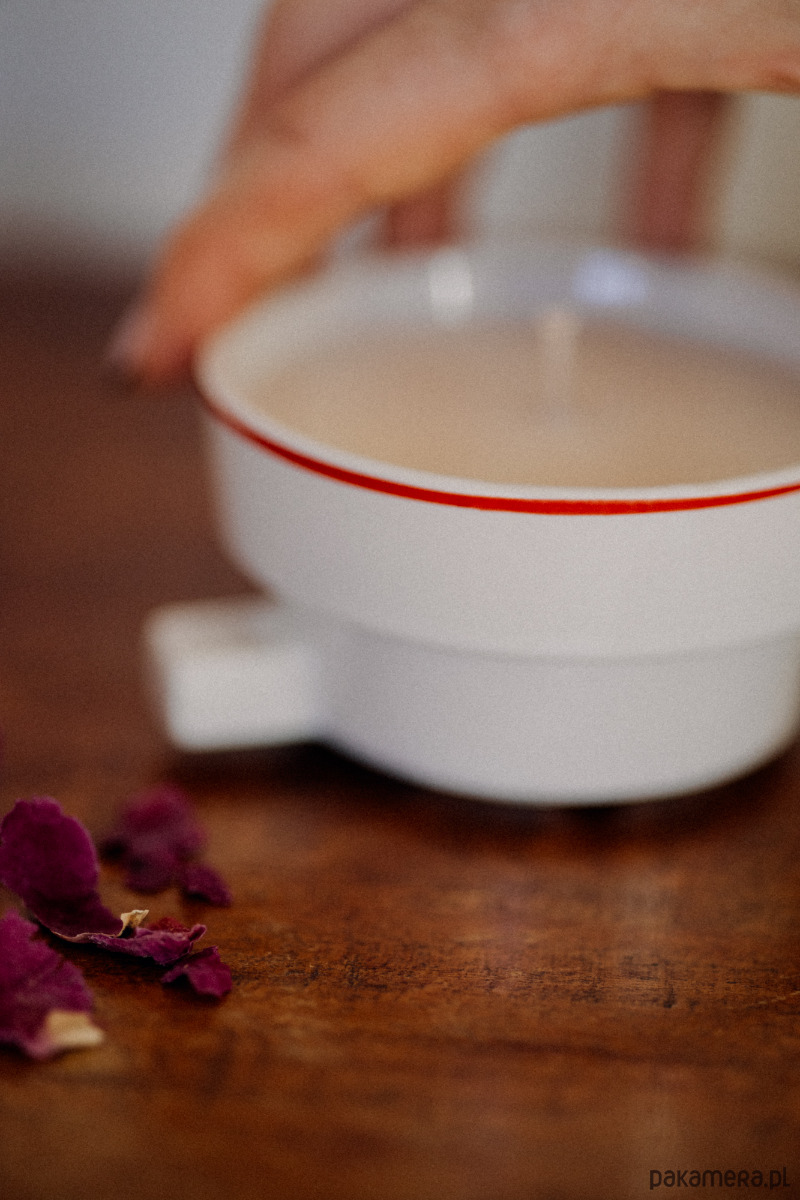 Naczynie pochodzi z drugiego obiegu. Po wypaleniu świecy można korzystać z niego jako filiżanki lub zalać ją u nas ponownie.
