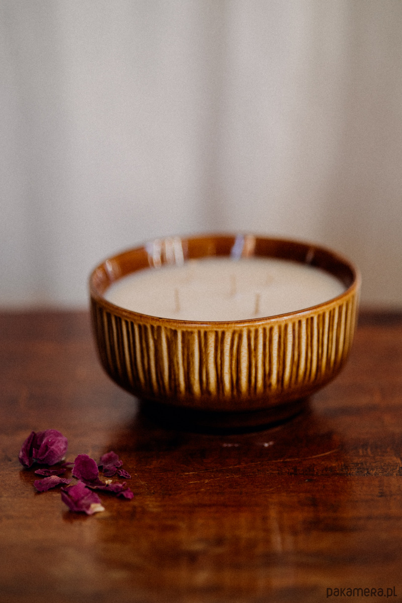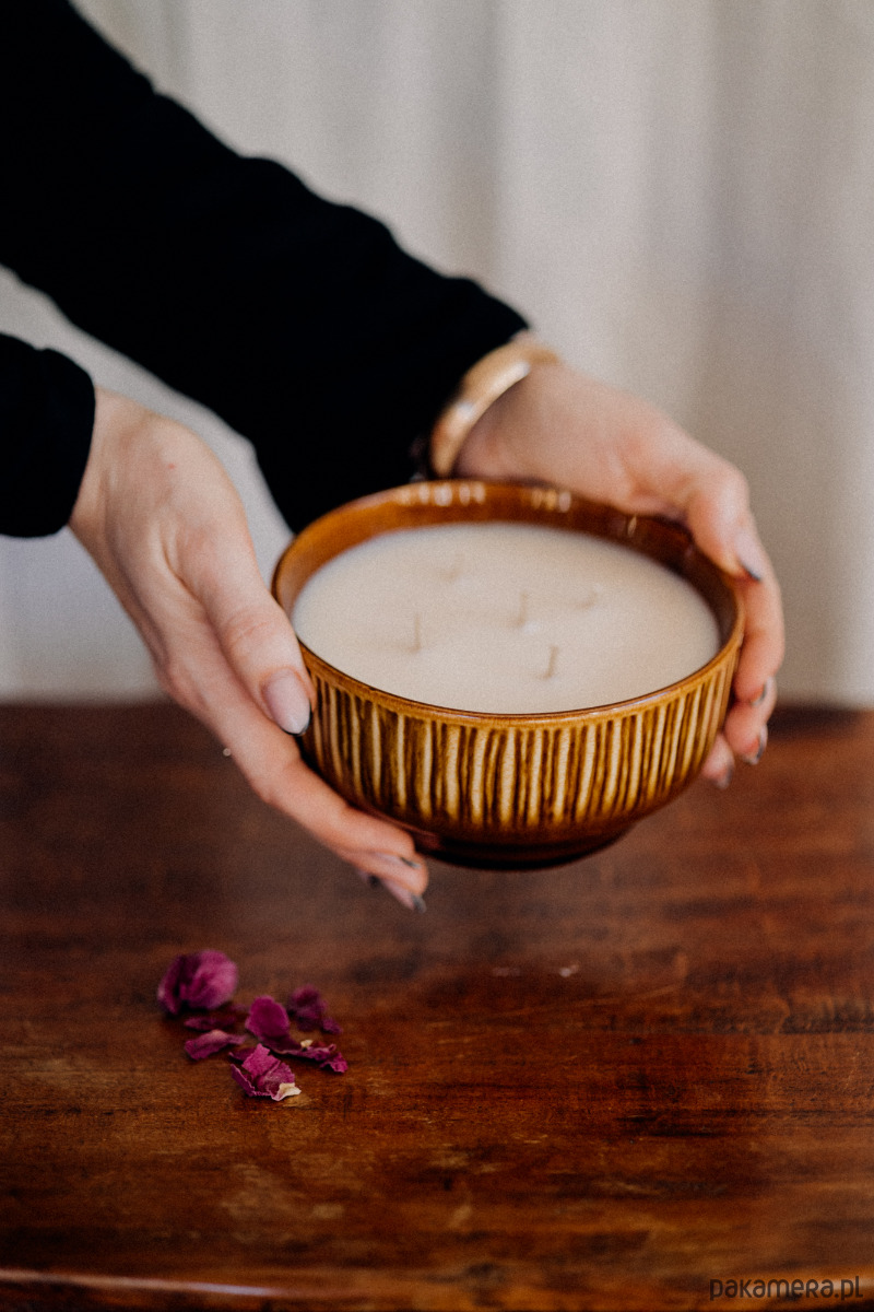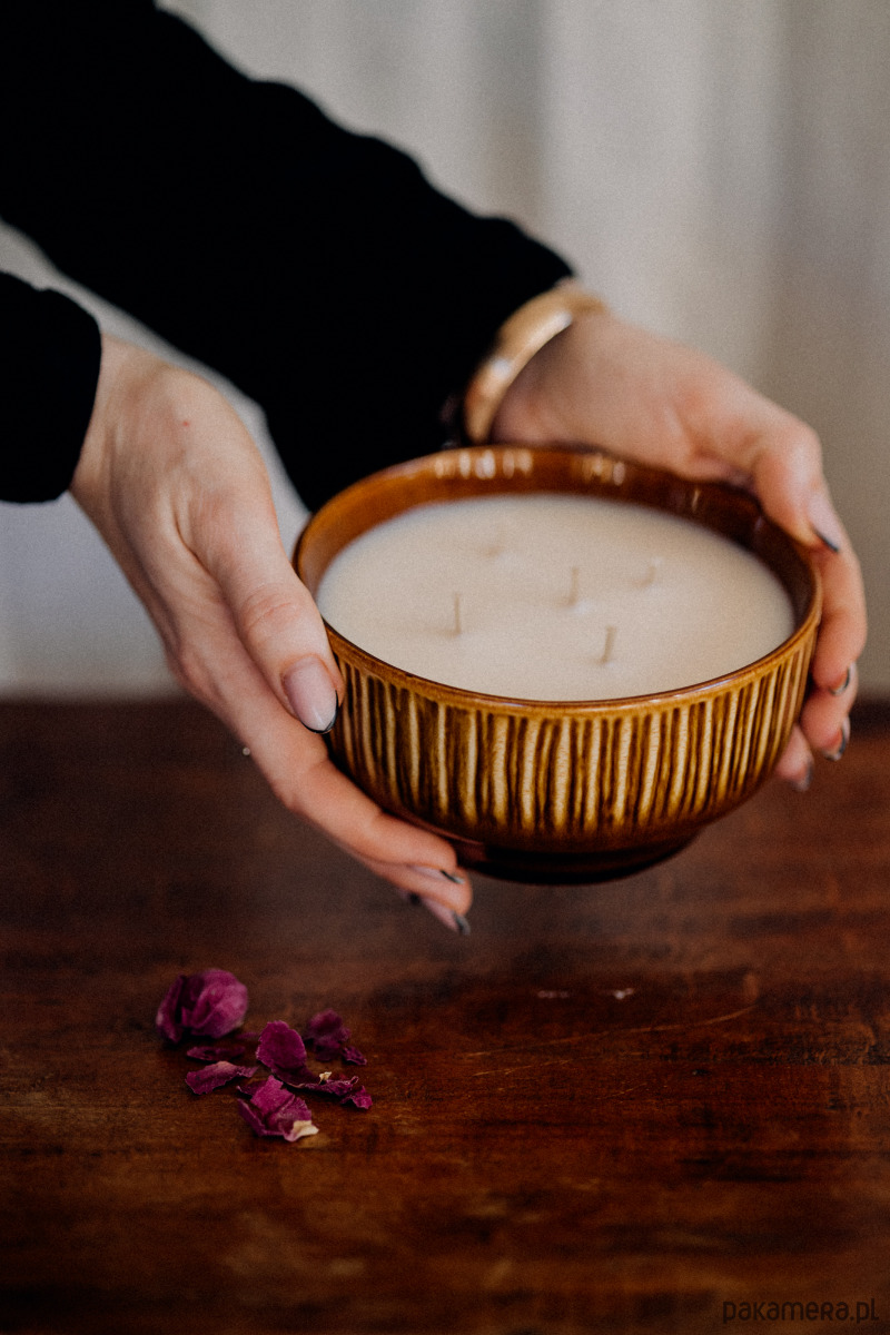 Jest w niej coś, co nas zatrzymuje i uspokaja. Zapachowa świeca sojowa w porcelitowym naczyniu vintage z Mirostowic.