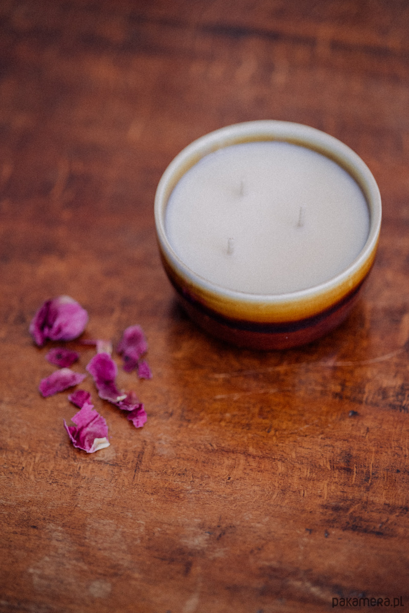 Jest w niej coś, co nas zatrzymuje i uspokaja. Zapachowa świeca sojowa w porcelitowym naczyniu vintage.