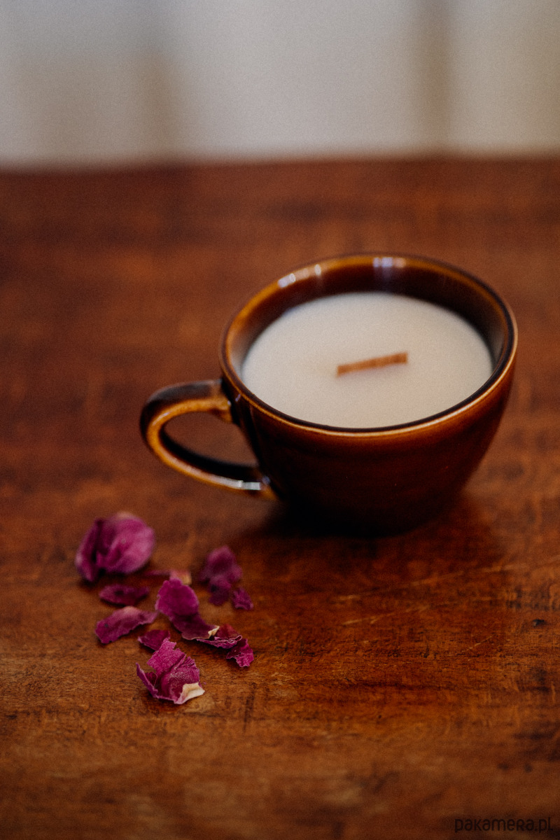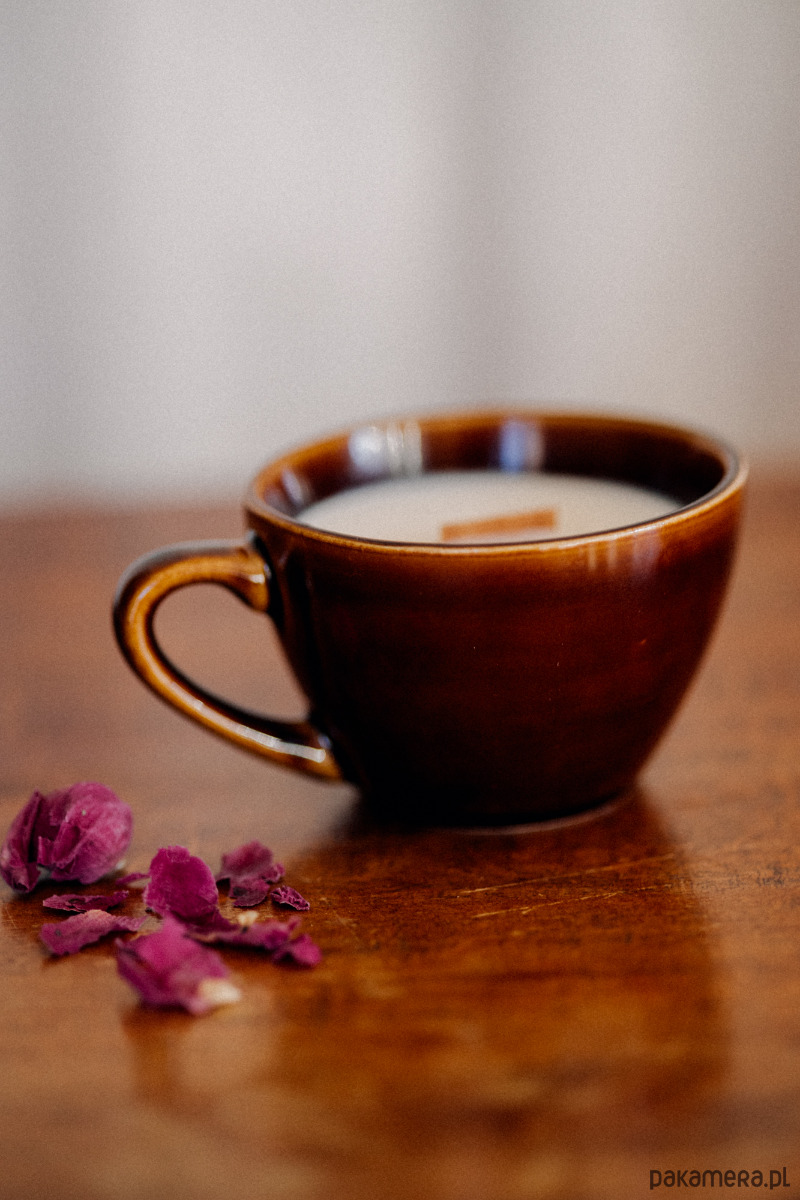 Jest w niej coś, co nas zatrzymuje i uspokaja. Zapachowa świeca sojowa w porcelitowym naczyniu vintage.