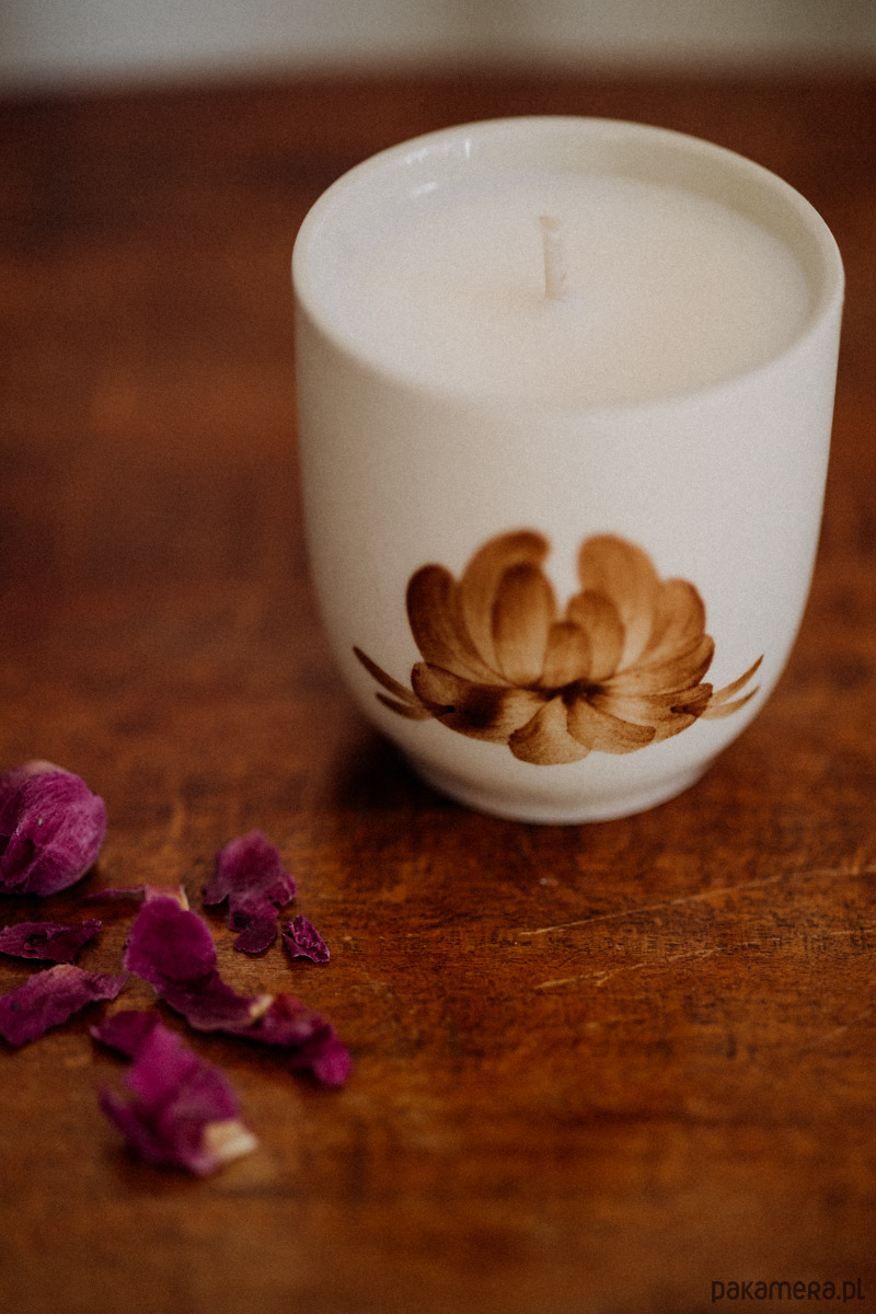 Jest w niej coś, co nas zatrzymuje i uspokaja. Zapachowa świeca sojowa w porcelitowym naczyniu vintage.