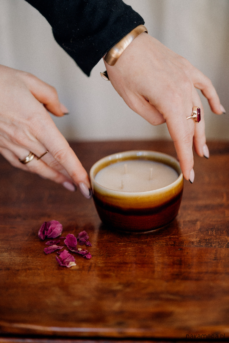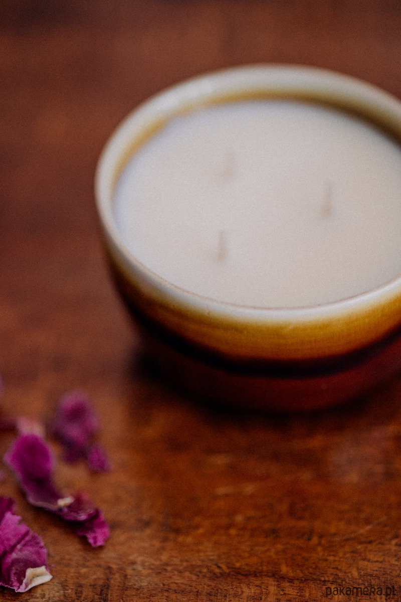 Jest w niej coś, co nas zatrzymuje i uspokaja. Zapachowa świeca sojowa w porcelitowym naczyniu vintage.