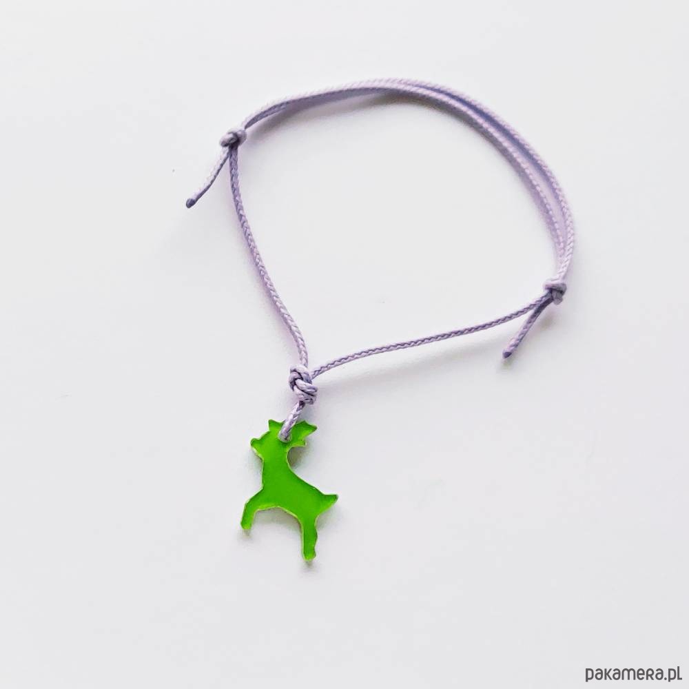 RENIFER bransoletka- zabawny dodatek. Ciekawy dodatek przykuwają uwagę i zaskakuje wzornictwem. Taka bransoletka sprawi, że każda stylizacja nabierze niepowtarzalnego, fantazyjnego charakteru. Bransoletka wykonana jest z: tworzywo sztuczne, ozdobny sznurek. Tworzywo sztuczne – zmatowione. Długość zawieszki 1,5 cm. Szeroko – 1,3 cm.