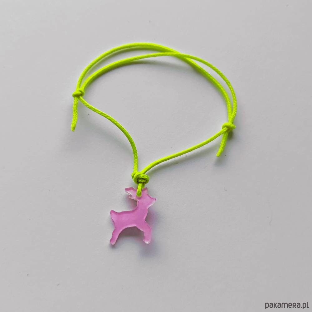 RENIFER bransoletka- zabawny dodatek. Ciekawy dodatek przykuwają uwagę i zaskakuje wzornictwem. Taka bransoletka sprawi, że każda stylizacja nabierze niepowtarzalnego, fantazyjnego charakteru. Bransoletka wykonana jest z: tworzywo sztuczne, ozdobny sznurek. Tworzywo sztuczne – zmatowione. Długość zawieszki 1,5 cm. Szeroko – 1,3 cm.