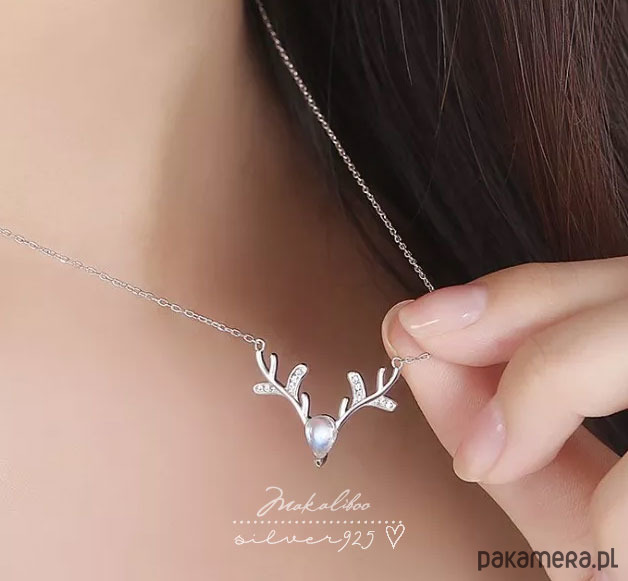 szerokość poroża ok 27 mm . Długość łańcuszka 40 cm + 5 cm przedłużka. Naszyjnik zapakowany jest w metalową kulę świąteczną.