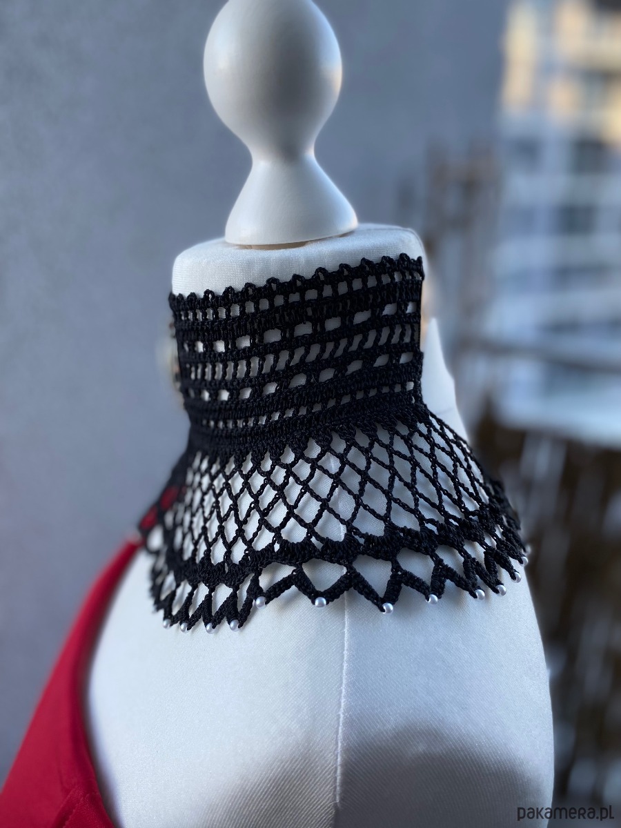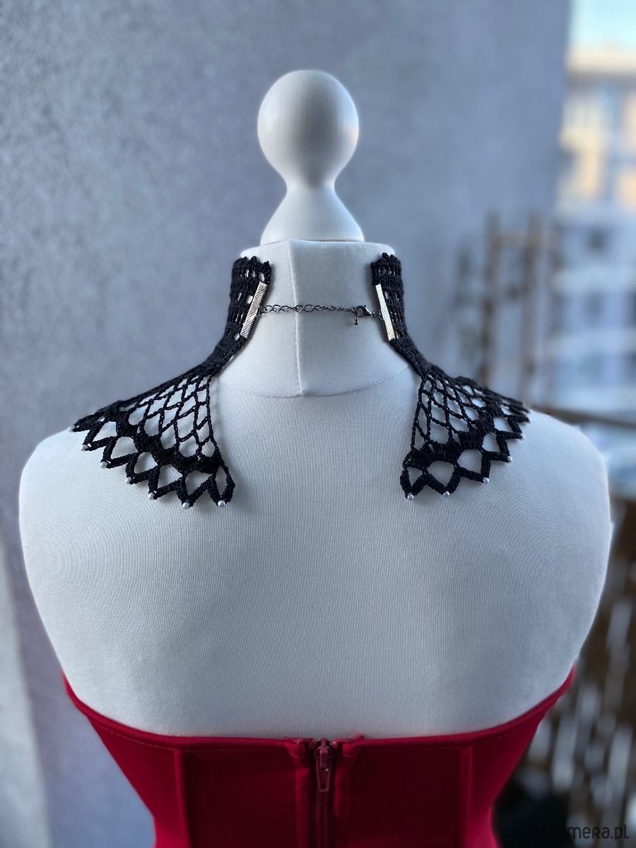 Koronkowy naszyjnik dla wielbicielek stylu Retro✨Unikatowy, pięknie wygląda do sukni lub bluzki ze stójką 🖤 w centrum piękna Kamea na końcach koronki maleńkie 3mm perełki.
