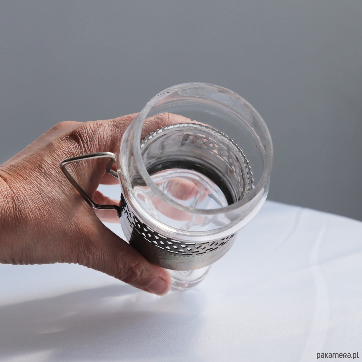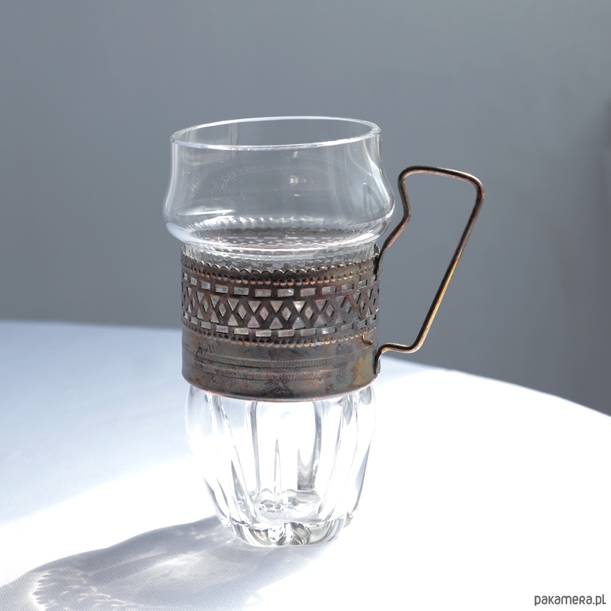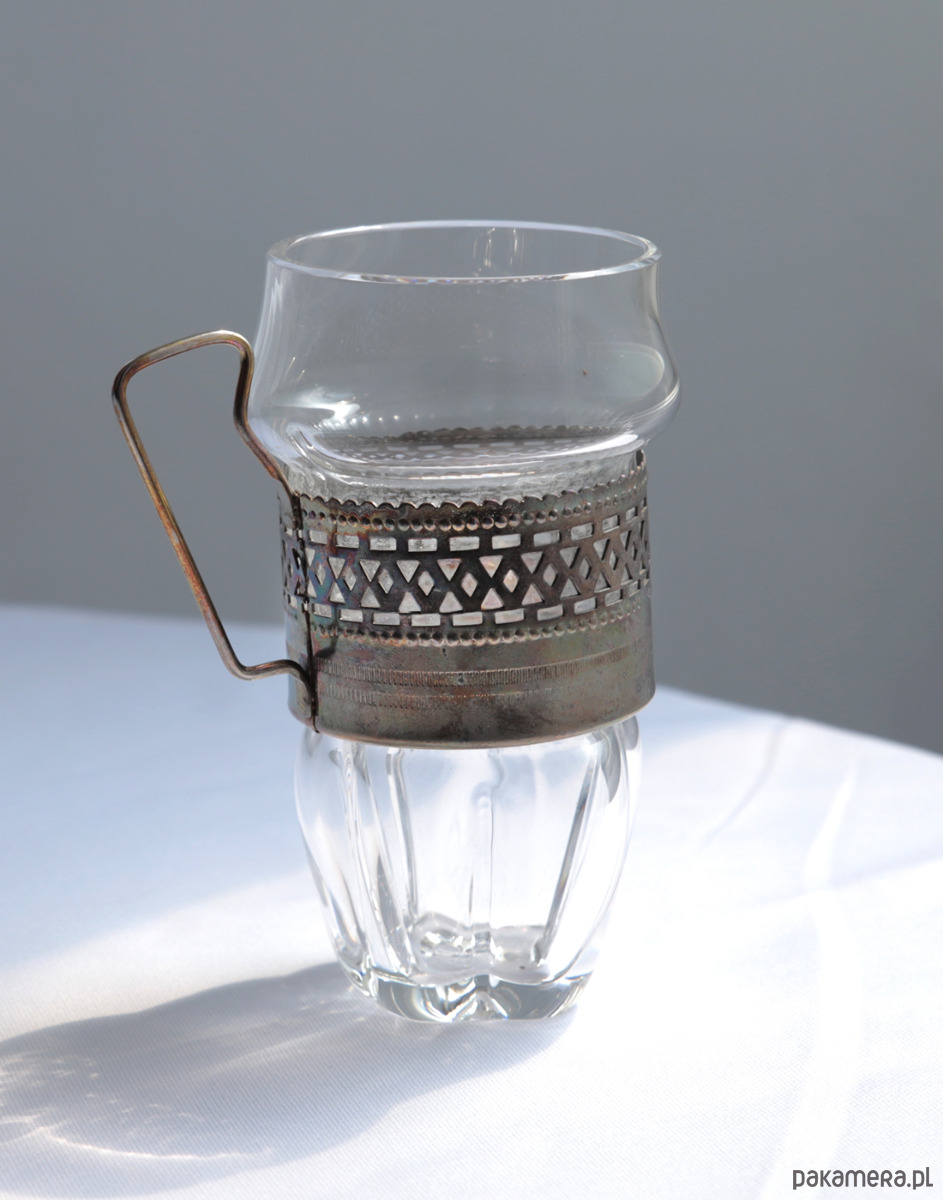 Tym razem za pomocą szkła zapisuję wspomnienia z dzieciństwa, Z dalekiej przeszłości przywołuję obraz mojej Babci i jej koleżanek rozmawiających o rzeczach mniej lub bardziej istotnych, popijających kawę parzoną bezpośrednio w szklankach zaopatrzonych w metalowe koszyczki, chroniące dłonie przed poparzeniem gorącym napojem. Postanowiłem w te metalowe koszyki wdmuchać gorące o temperaturze około 1200 stopni szkło kryształowe. Jest to proces nieodwracalny. Szkło na zawsze łączy się z metalowym koszykiem tworząc nowy obiekt. Dla kolejnych pokoleń będzie on być może zagadkowy, intrygujący, z czasem niezrozumiały. Materiał – szkło kryształowe Elementy dodatkowe- metalowy koszyk .