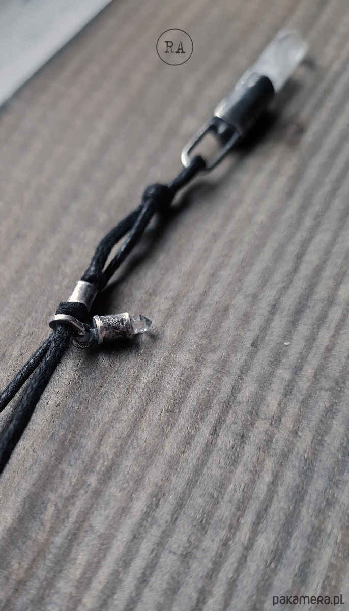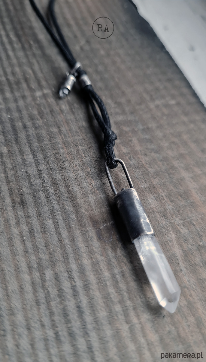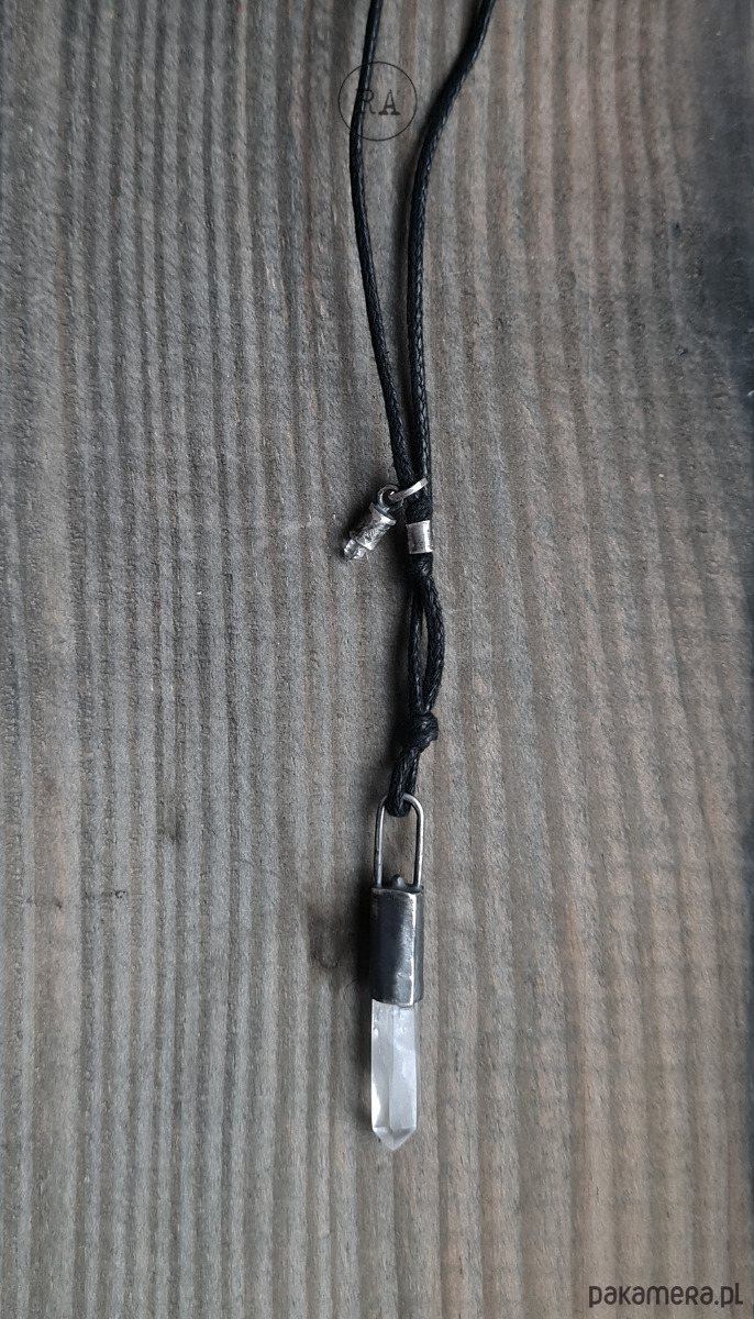 Wisior z naturalnym kryształem górskim, naszyjnik wykonany ręcznie, kryształ górski ok. 3 cm, wisior ok. 4,5 cm, maleńki kryształ z boku.