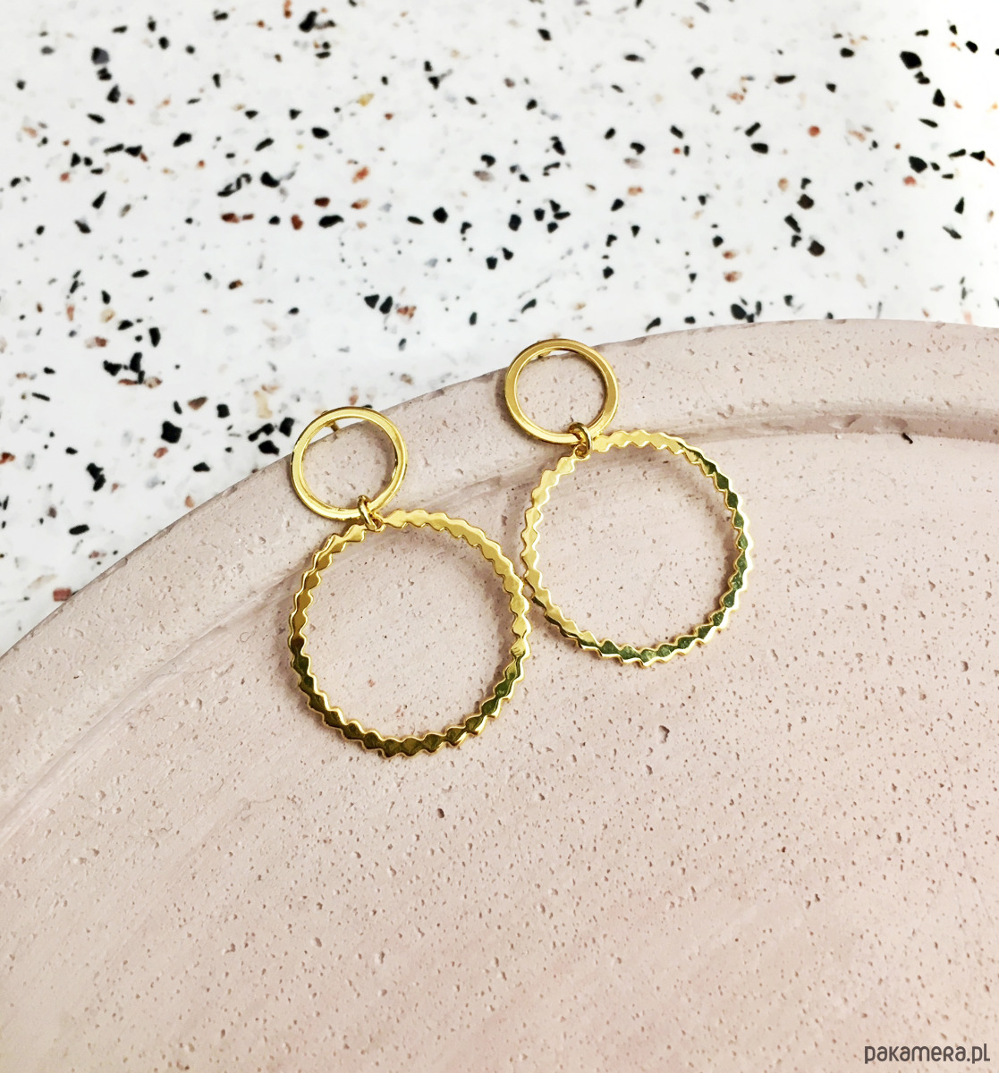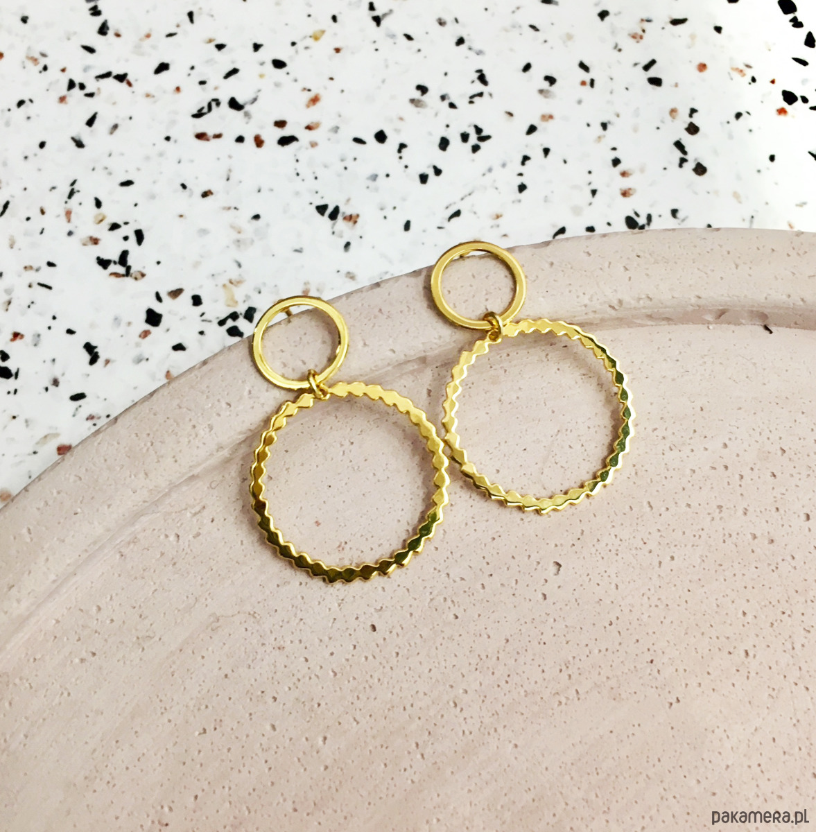 Kolczyki wykonano w całości ze srebra próby 925 pokrytego 24k złotem.