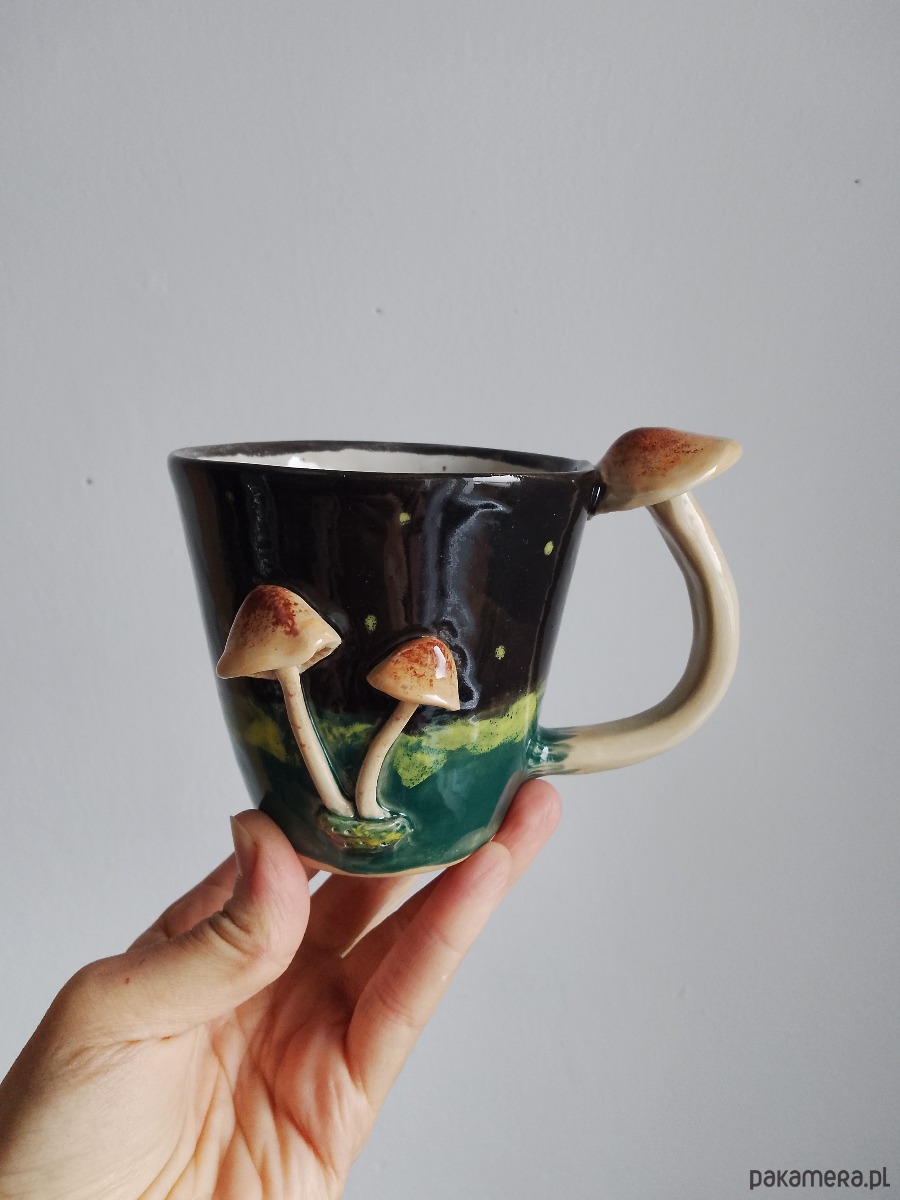 Kubek z grzybem, grzybkami, leśny