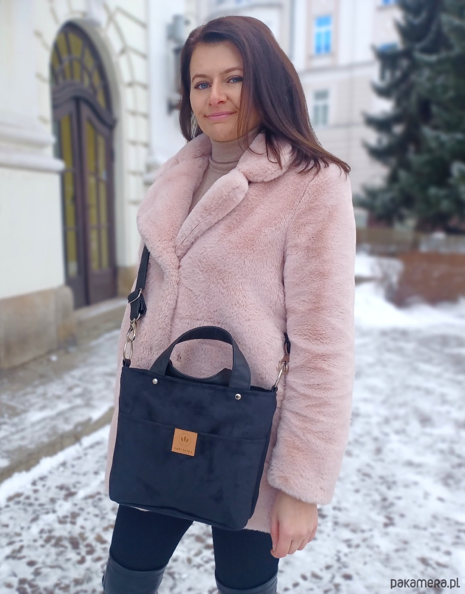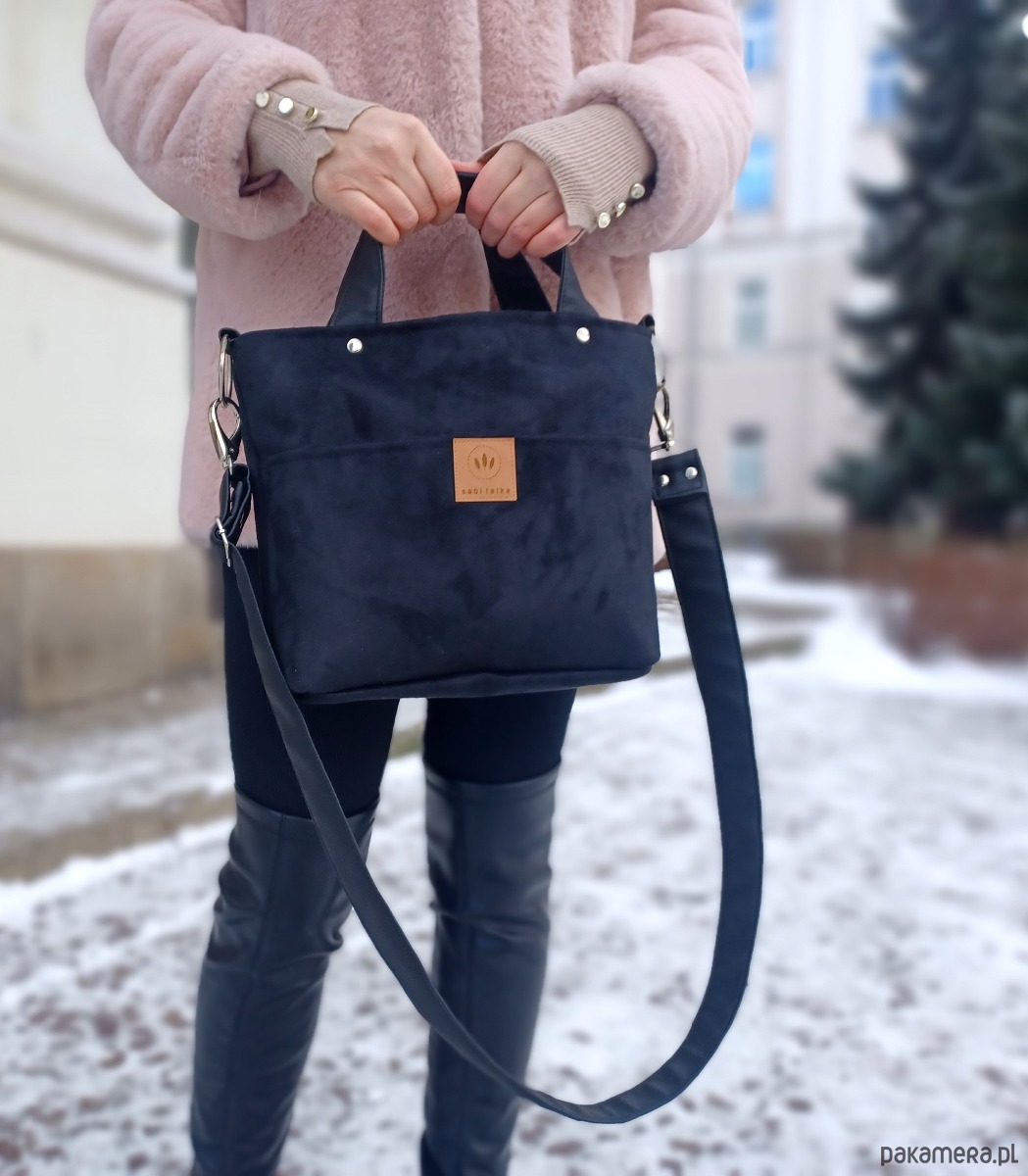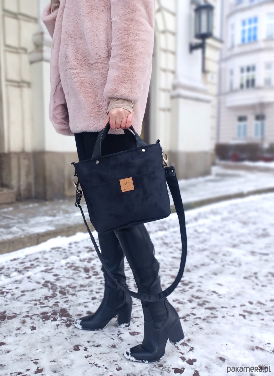 REZERWACJA Torebka z kieszeniami z wodoodpornego zamszu Czarna