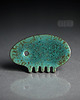 Oryginalna ceramiczna broszka inspirowana motywami biologicznymi, wykonana z gliny kamionkowej, szkliwiona zielonym szkliwem, zapięcie w kolorze starego złota. Długość ok. 3,7cm. Polecam