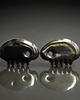 Efektowne kolczyki w formie sztyftów, ręcznie wykonane z delikatnej gliny kamionkowej, jednostronnie szkliwione stalowosrebrzystym szkliwem, na antyalergicznych sztyftach w kolorze srebrnym.długość elementu ceramicznego ok. 14mm, Polecam