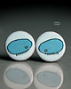 Ceramiczne okrągłe kolczyki, ręcznie wykonane z delikatnej szarej gliny kamionkowej, jednostronnie szkliwione mieszanką szarobłękitnych, subtelnie błyszczących szkliw z efektem plamek, dekorowane autorska kalką ceramiczną, na antyalergicznych sztyftach ze stali chirurgicznej w kolorze srebrnym, Średnica ok. 11mm. Polecam
