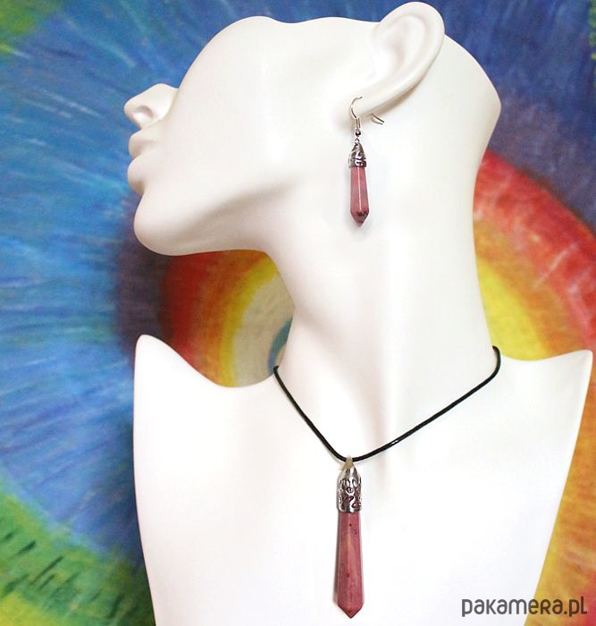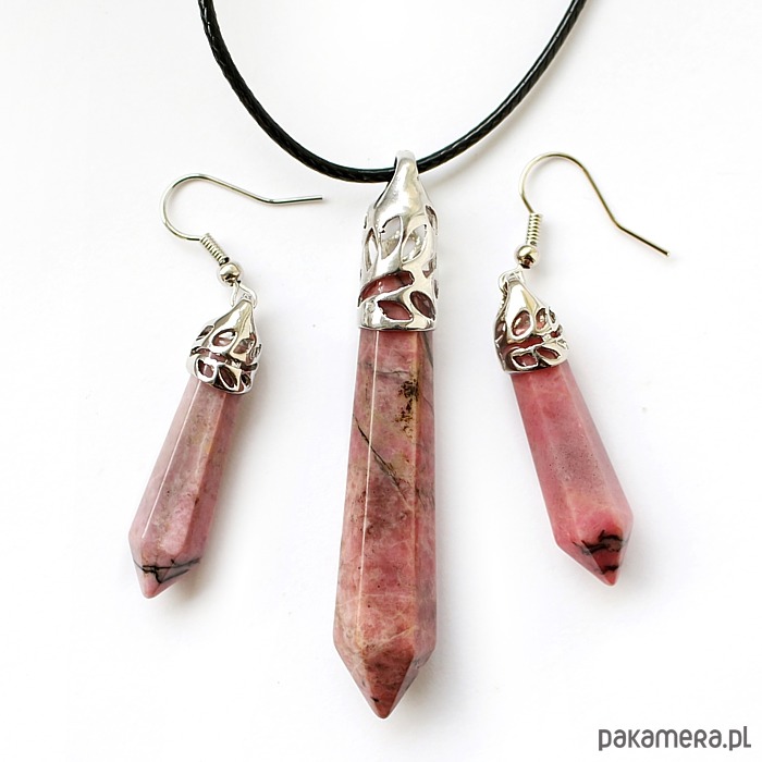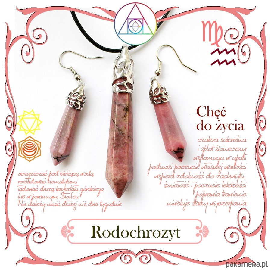 Energetyczny komplet - wisior i kolczyki z rodochrozytem wspierający uzdrawianie czakry sakralnej i splotu słonecznego. Oczyszczony, zregenerowany, napełniony energią czystego światła o najwyższej wibracji. ❤