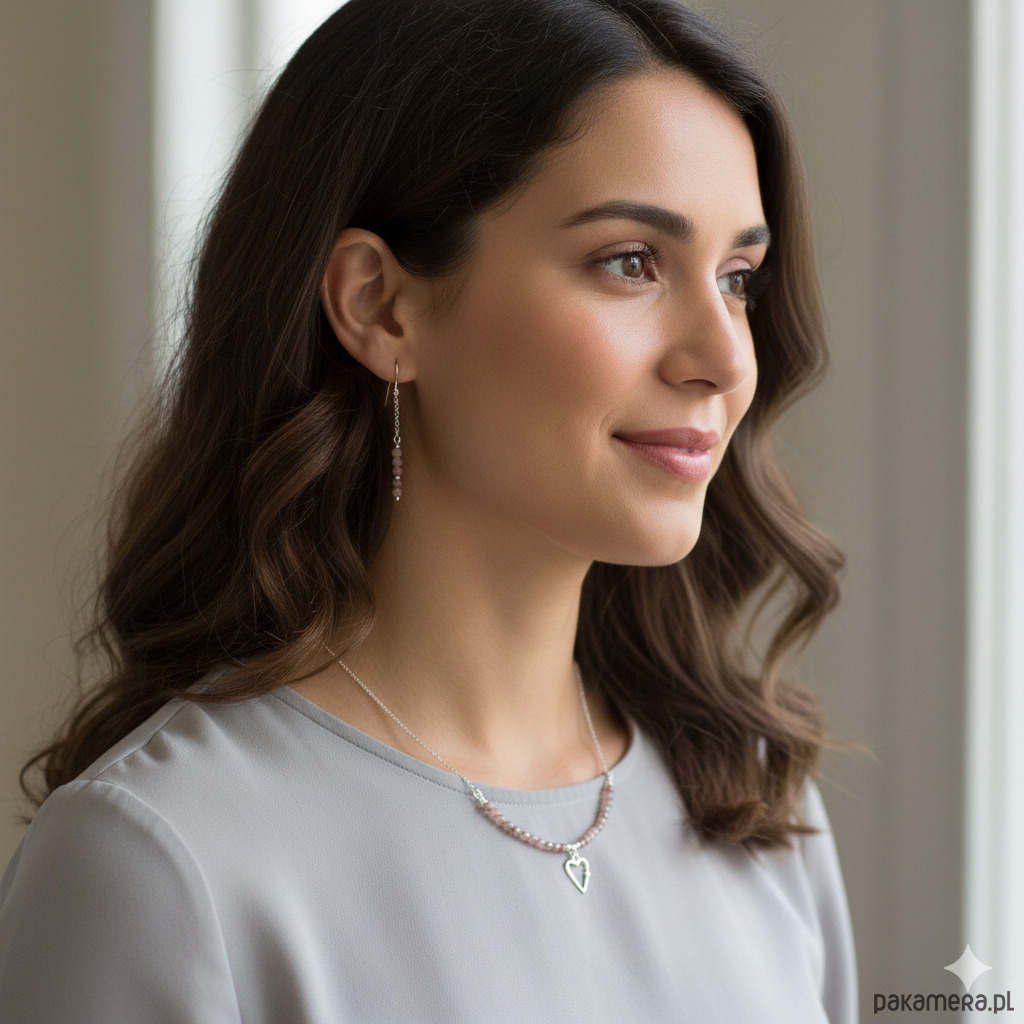 Rodochrozyt różowy, srebro 925, drobny naszyjnik z sercem, serduszkiem