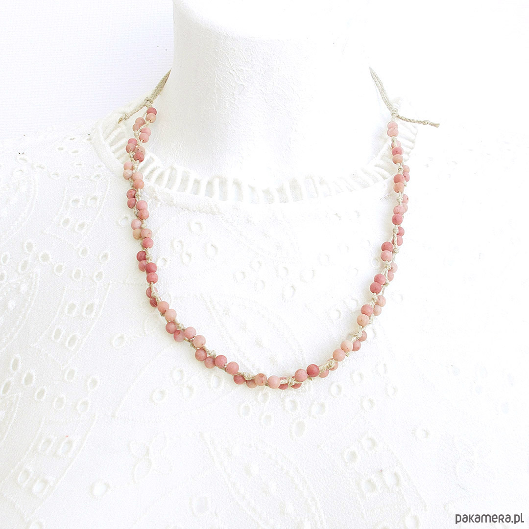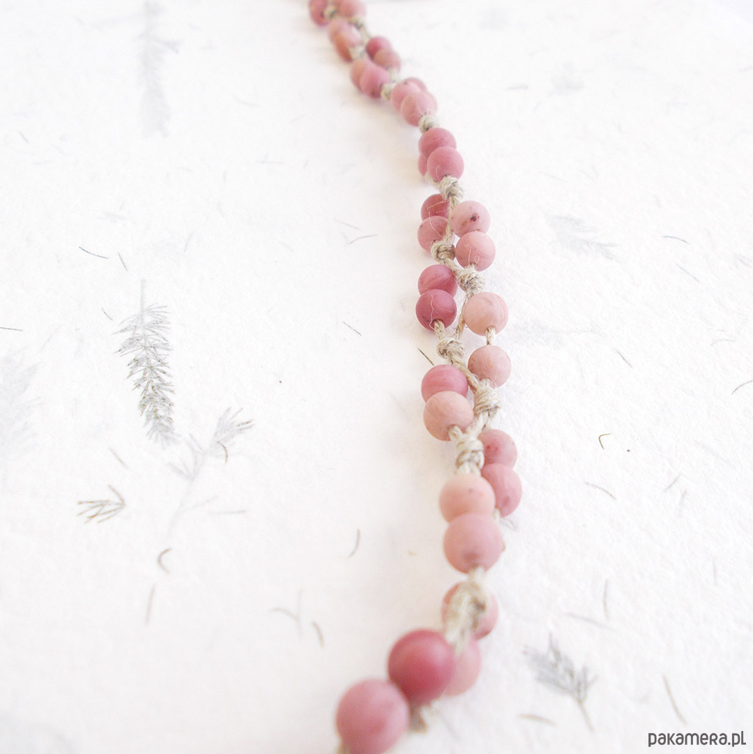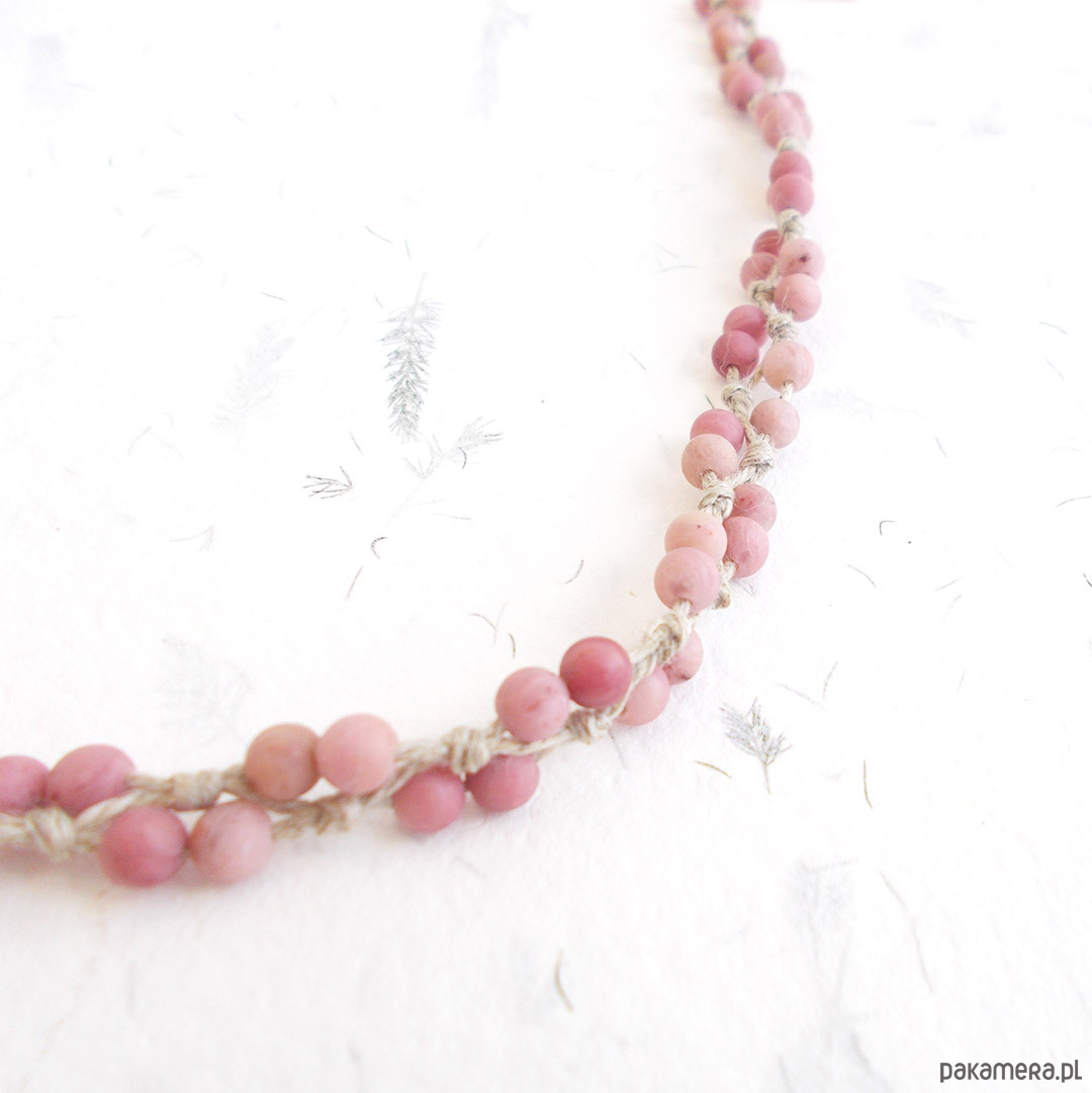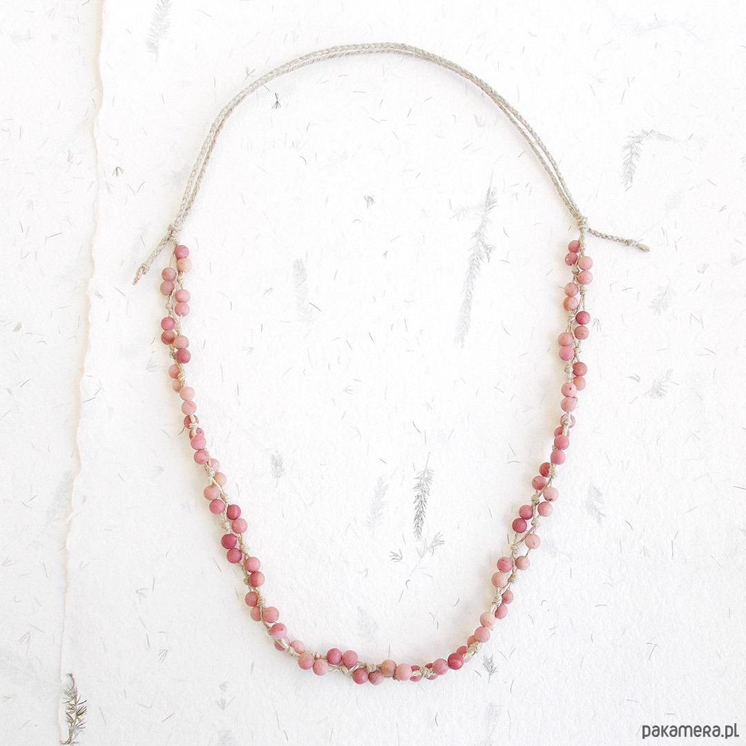wykonany na bazie naturalnego lnu i pięknie wybarwionych kamieni rodonitu