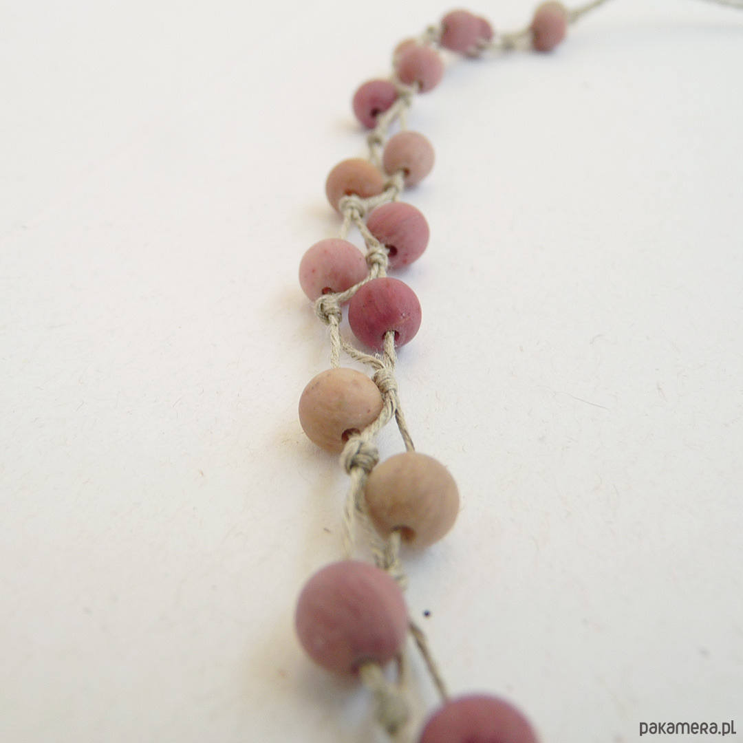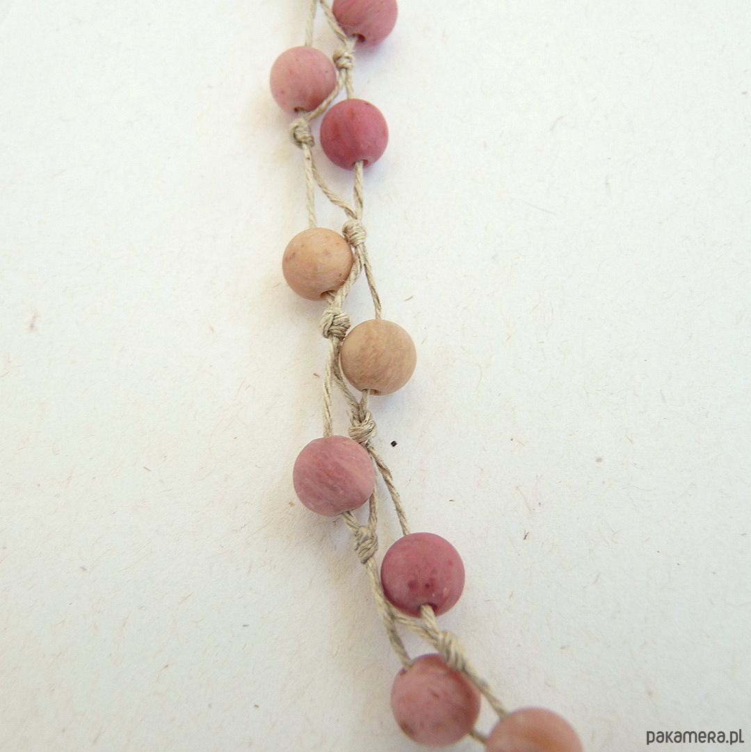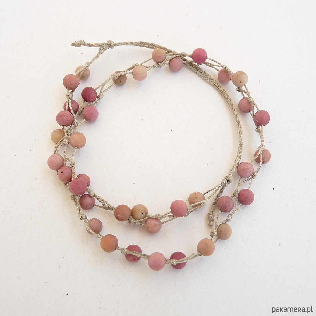 Materiały: rodonit matowy średnica 6,5 mm , len naturalny