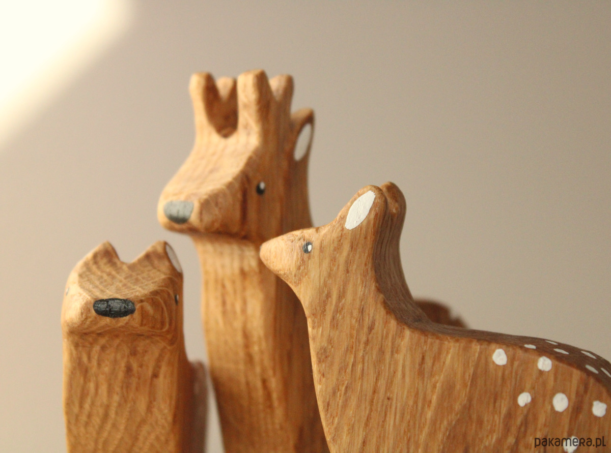 Zestaw ręcznie wykonanych drewnianych figurek leśnych zwierząt - rodzina Saren