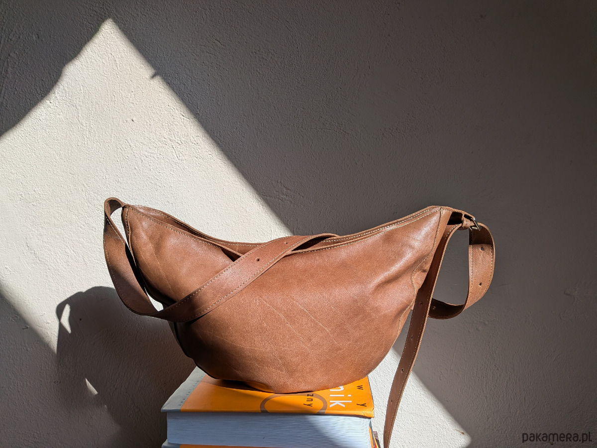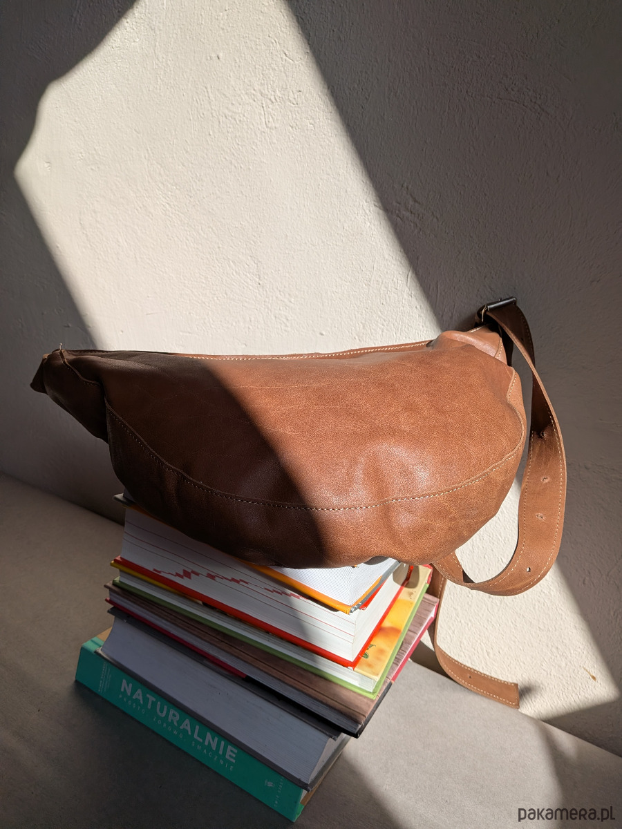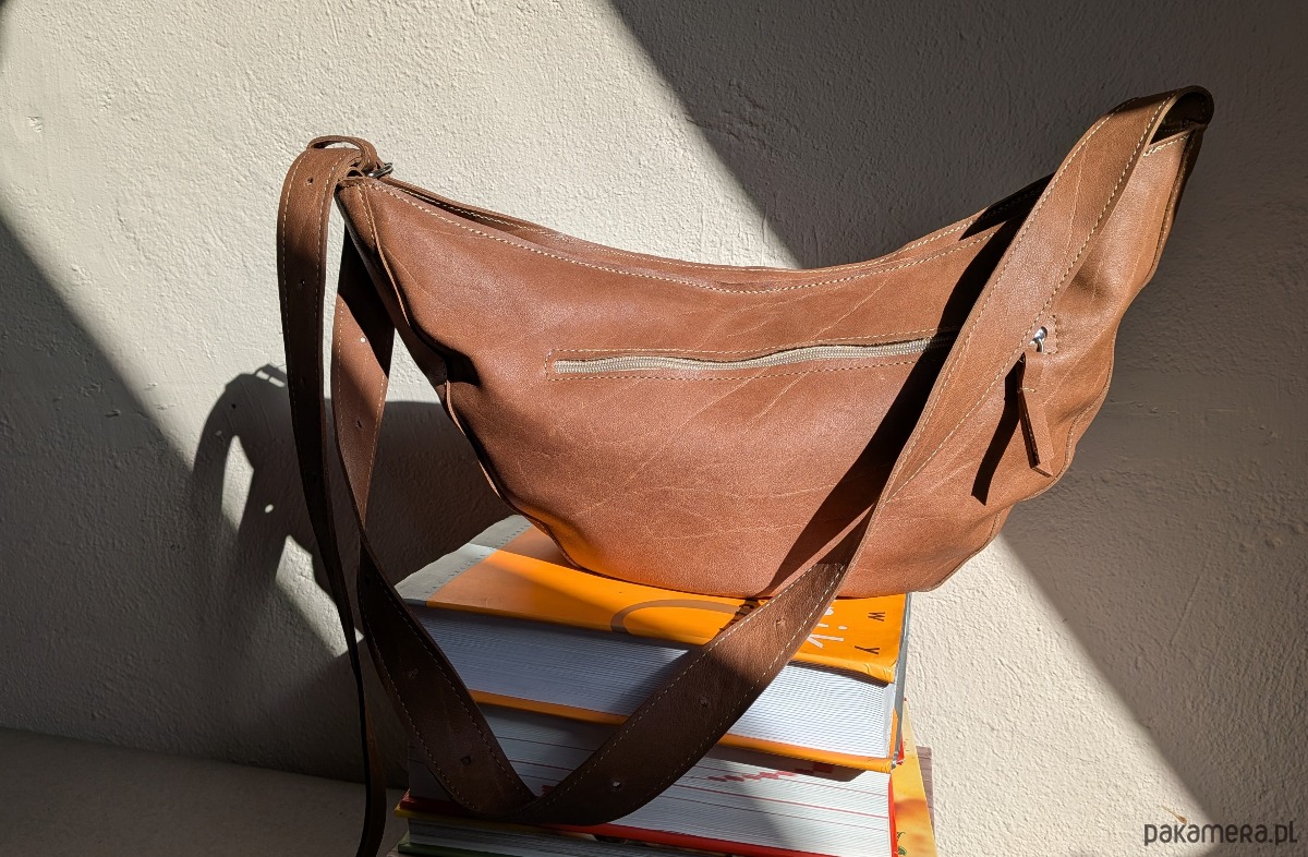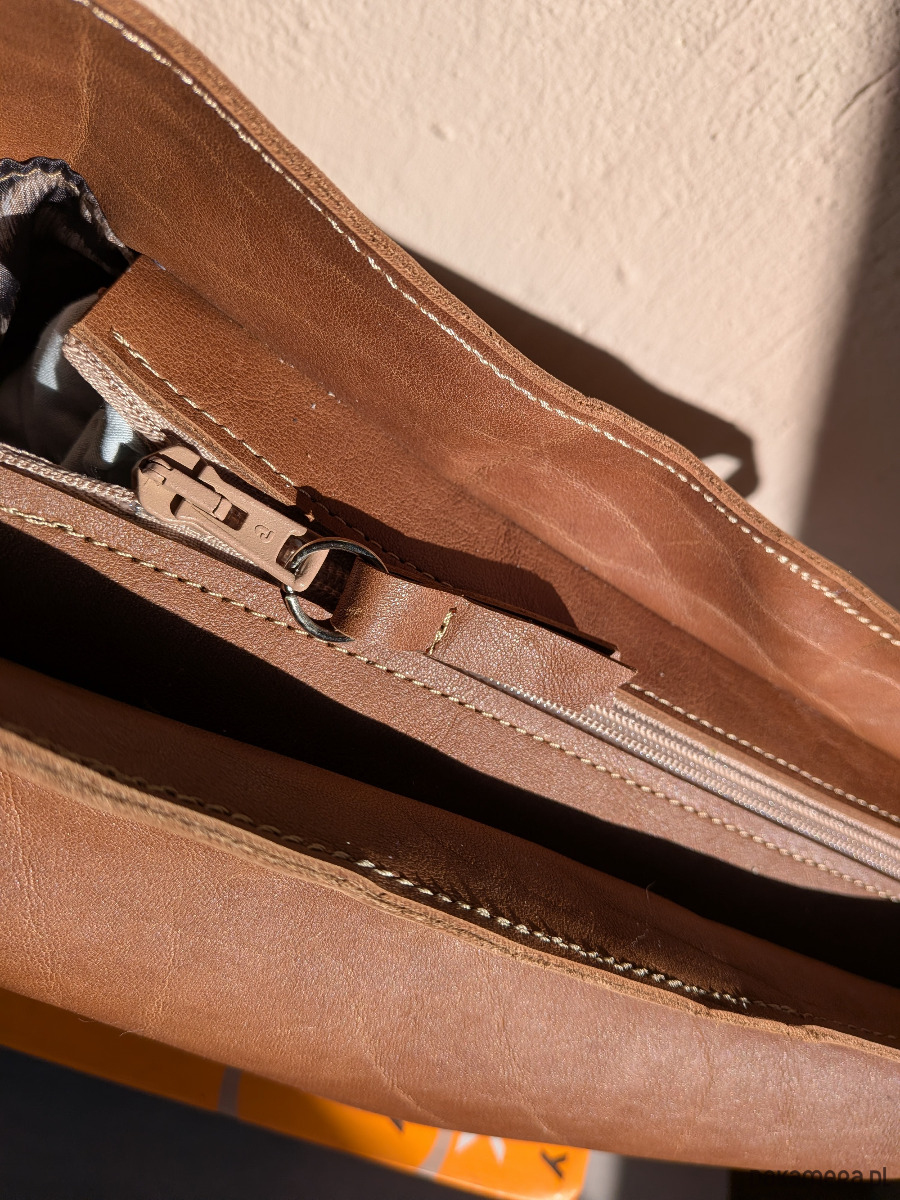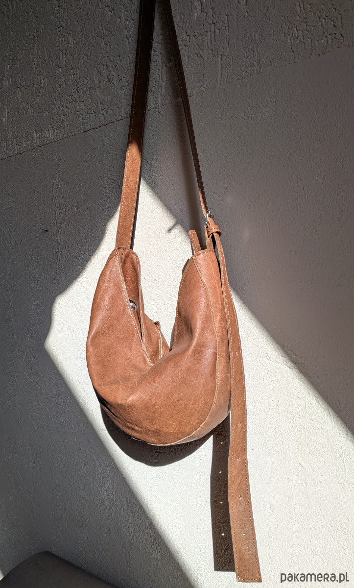 Rogalik średniej wielkości skórzana torebka jasno brązowa