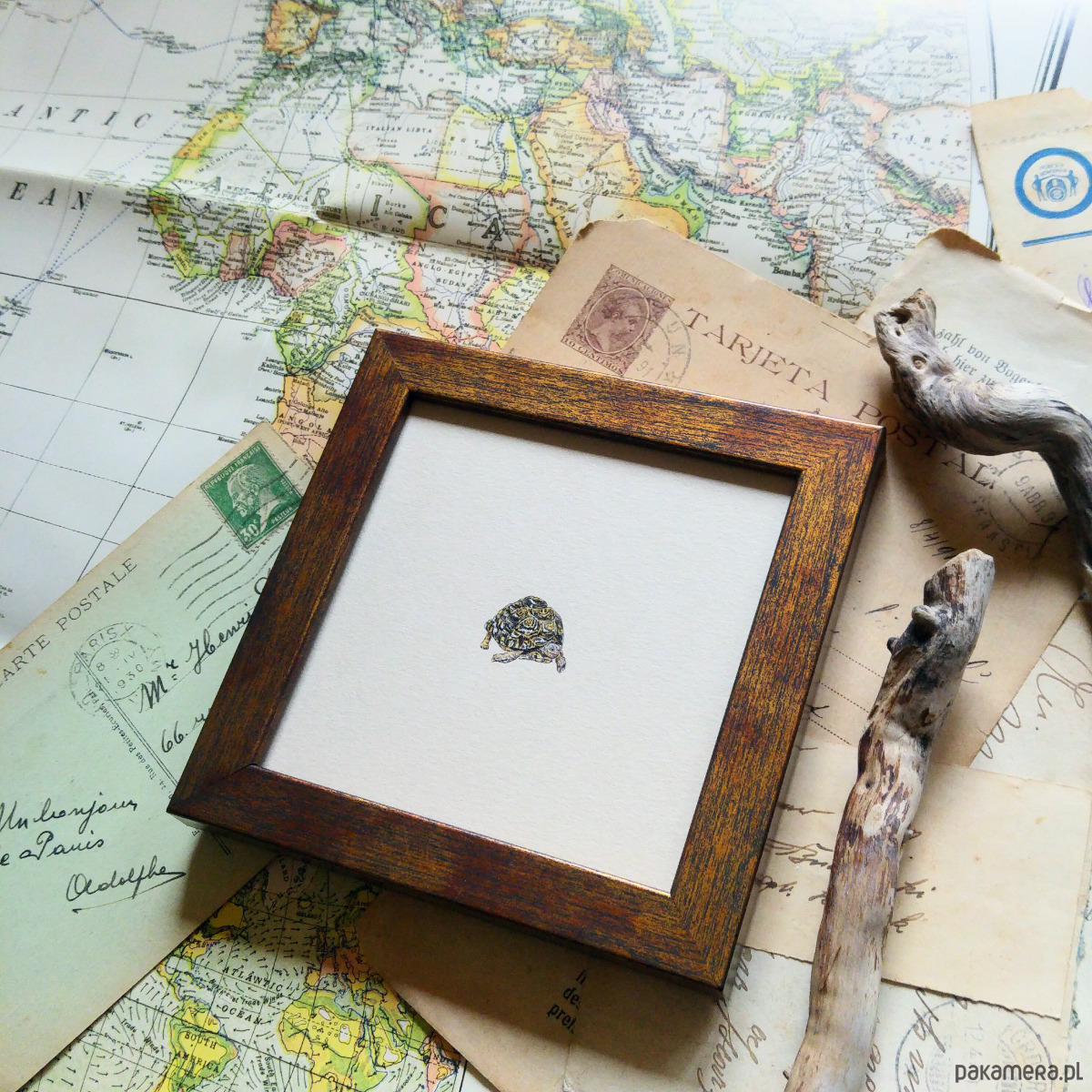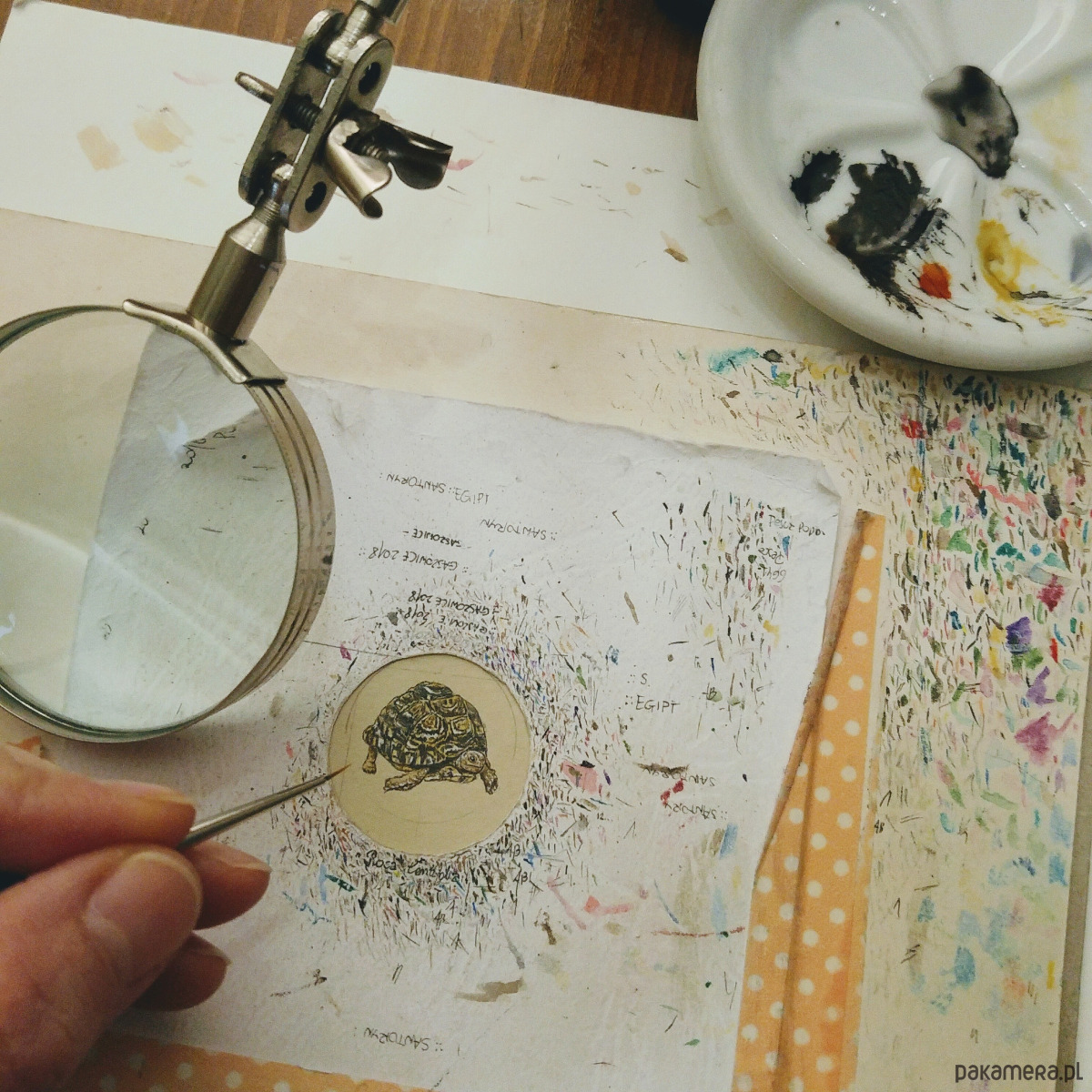 Szczegóły najlepiej widać przez szkło powiększające ;-) Pięknie prezentuje się cała kolekcja miniaturek na ścianie zebranych tematycznie - książki, kwiaty, ulubione miejsca, ptaki ...