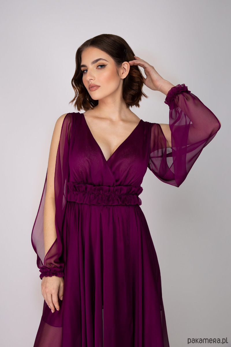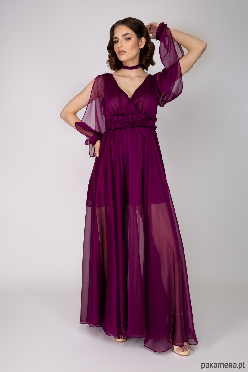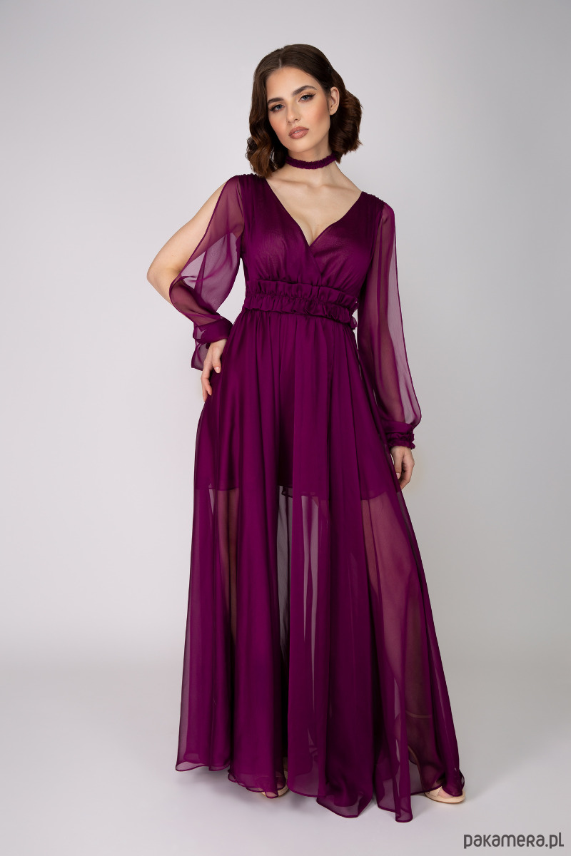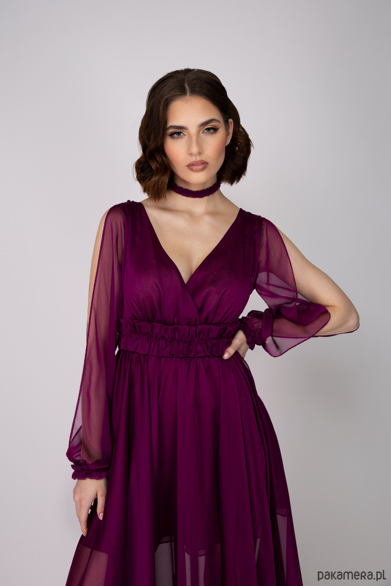 Romantyczna dwutonowa suknia z szyfonu w kolorze bordo