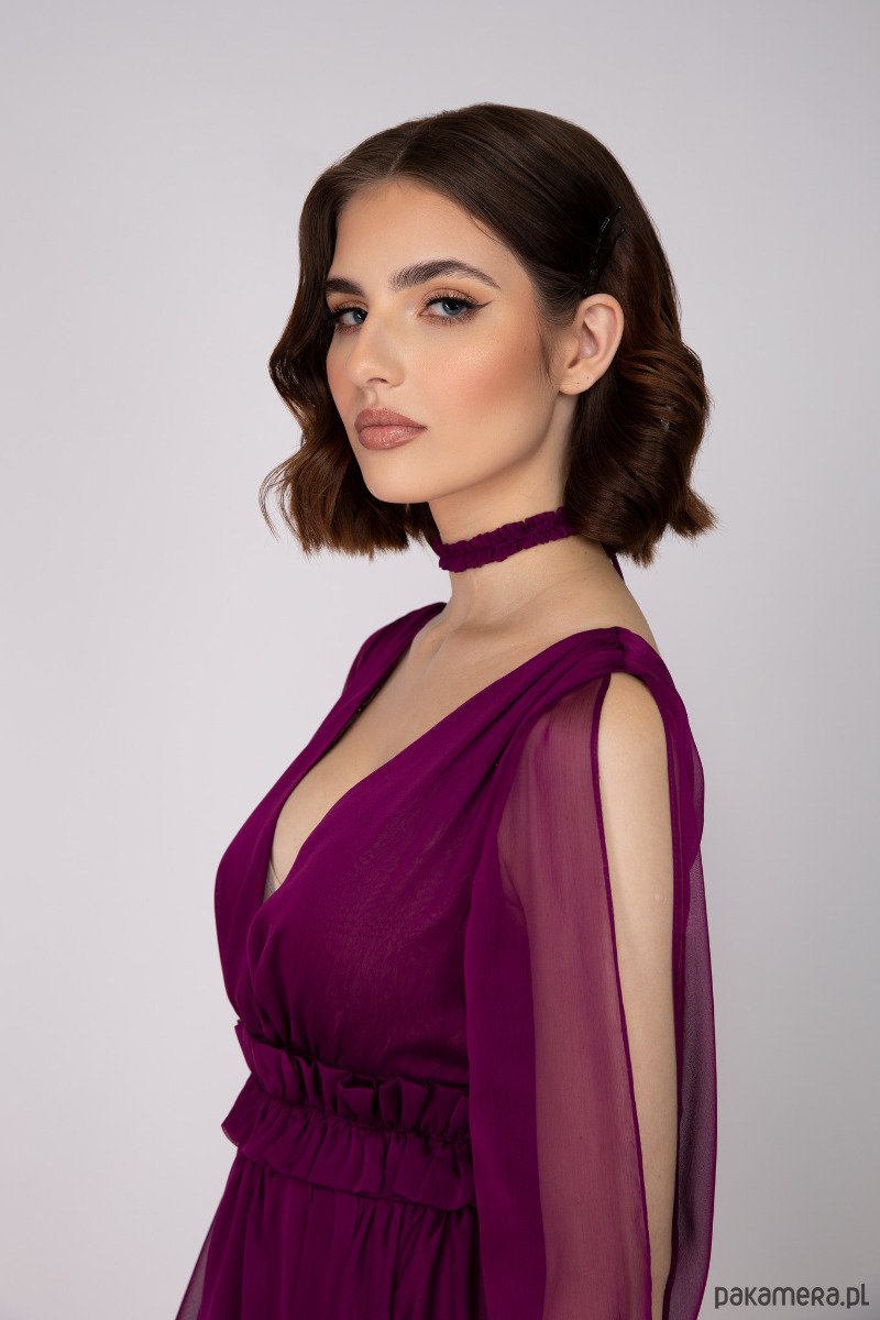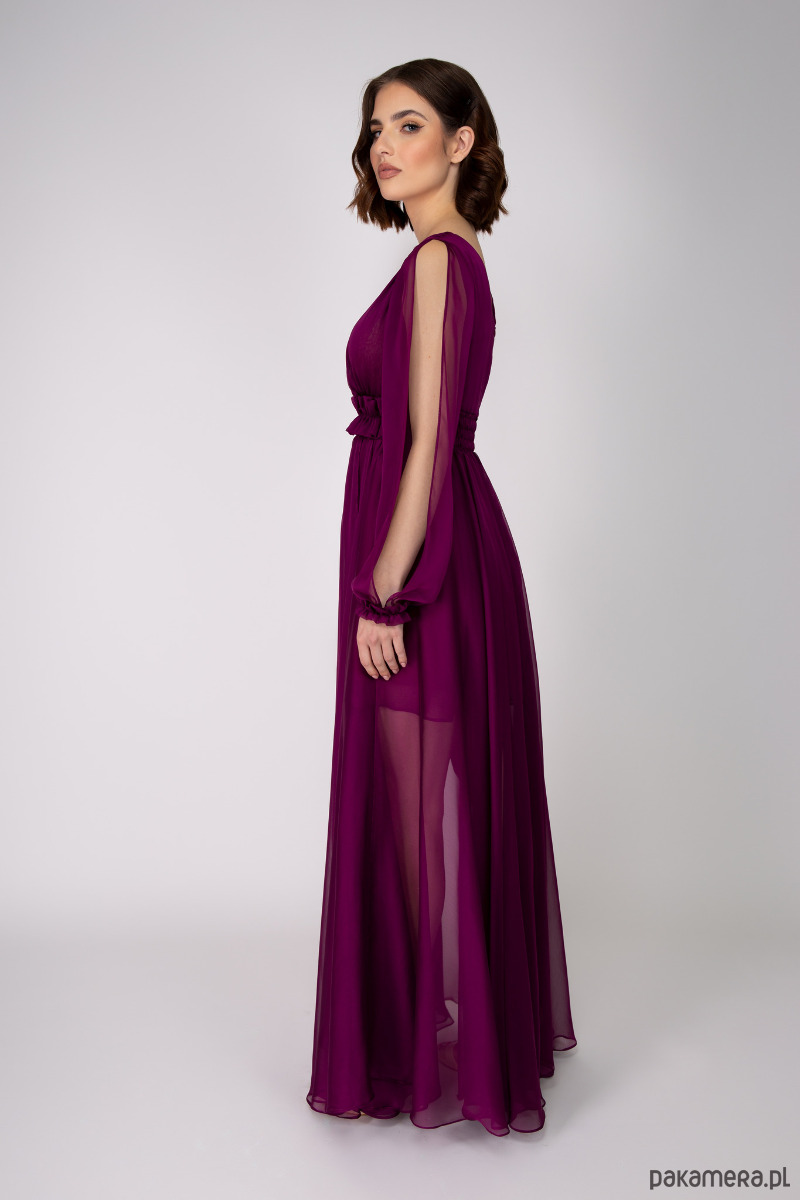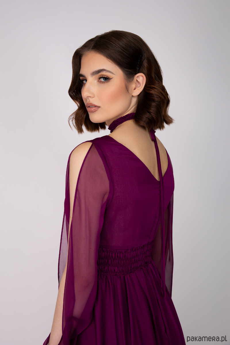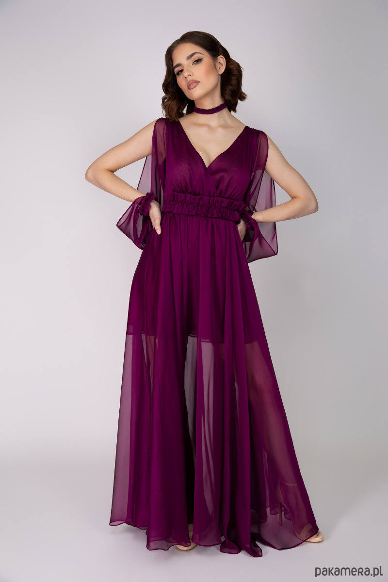 Romantyczna dwutonowa suknia z szyfonu w kolorze bordo