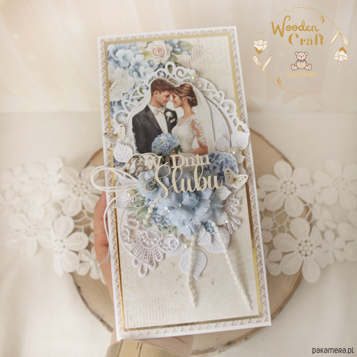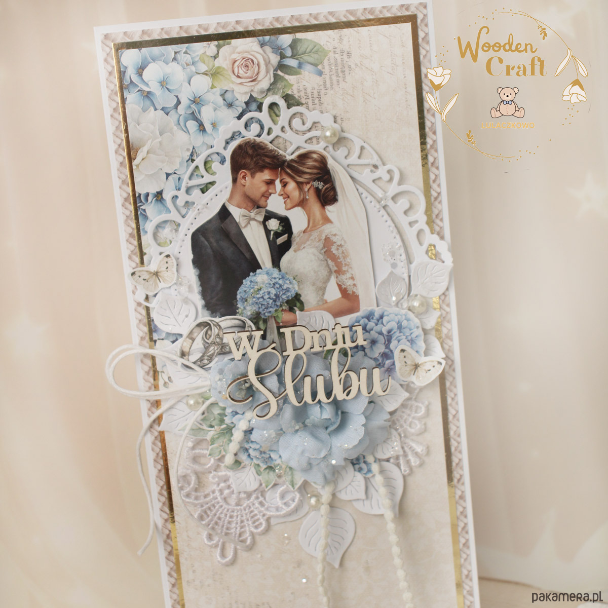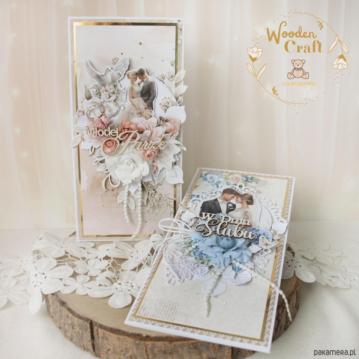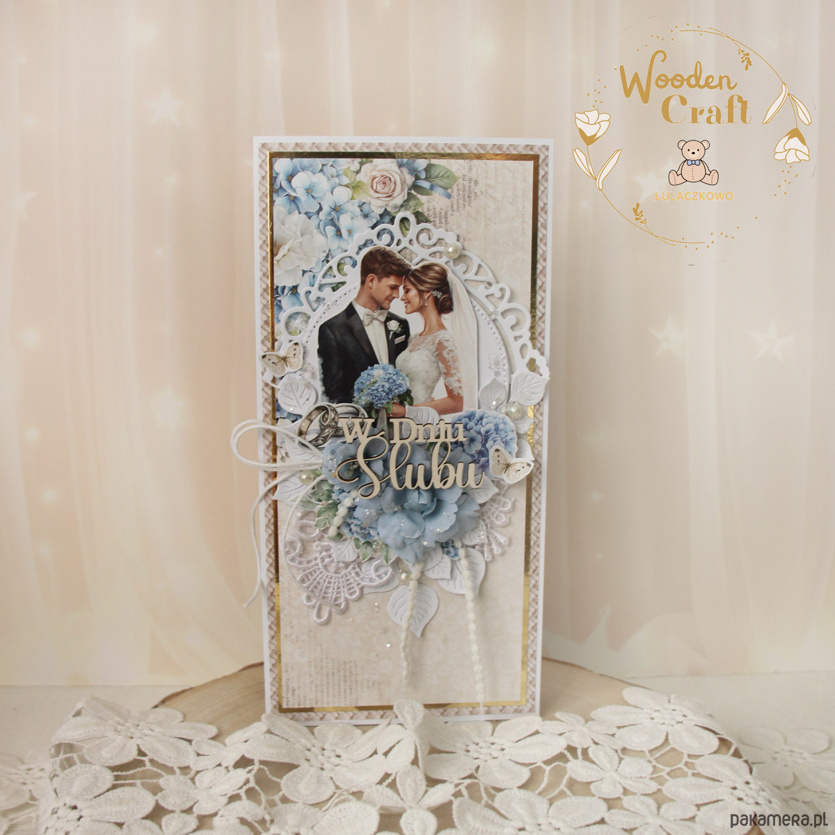 Kartka będzie pięknym i niepowtarzalnym dodatkiem do prezentu dla Państwa Młodych.