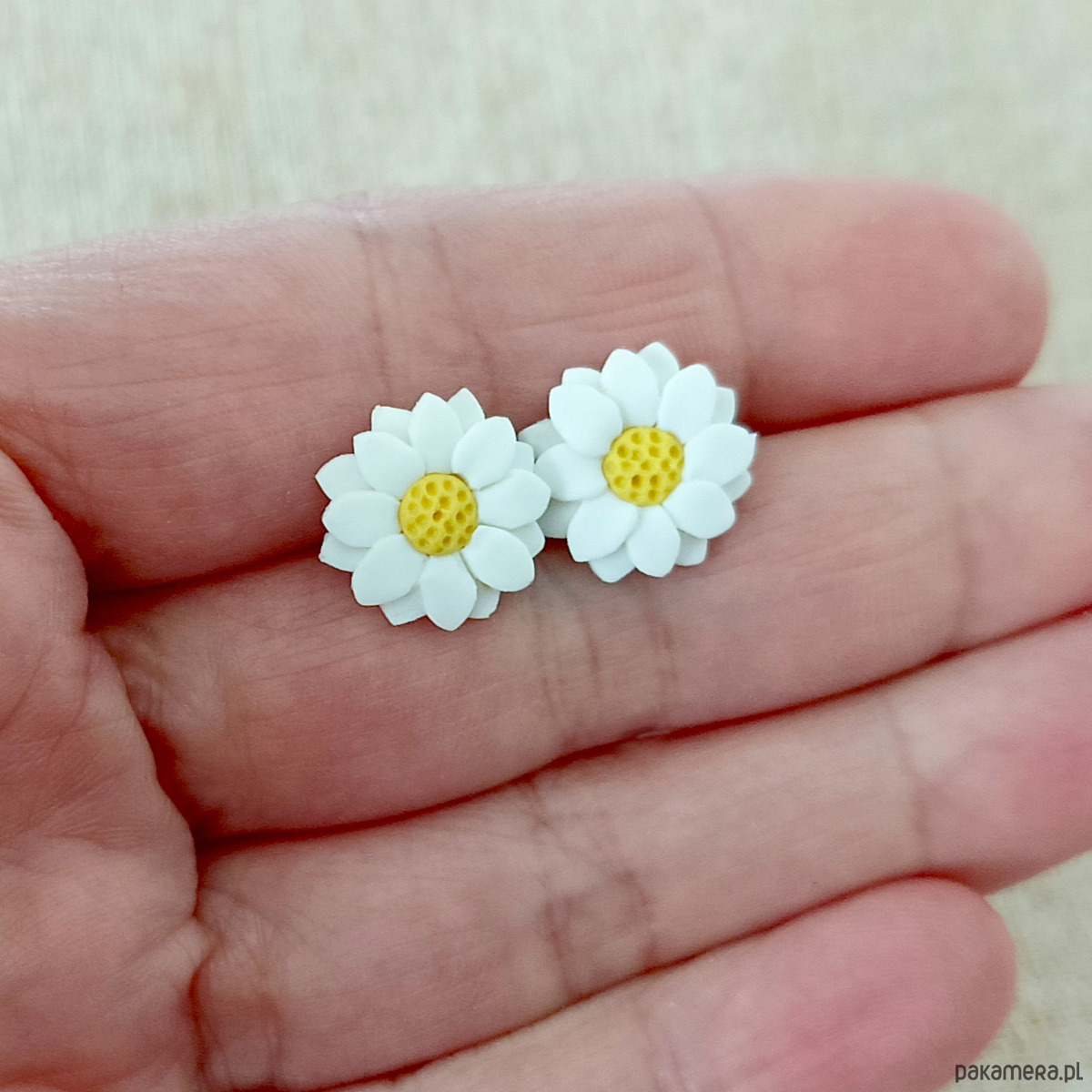 Delikatne kolczyki w kształcie białych stokrotek, wykonane ręcznie z modeliny FIMO. Idealne dla miłośniczek subtelnej, romantycznej biżuterii inspirowanej naturą. Doskonale sprawdzą się jako dodatek do wiosennych i letnich stylizacji, na co dzień, na ślub czy dla druhen. Lekkie, dziewczęce i pełne uroku – stworzone z dbałością o każdy detal.