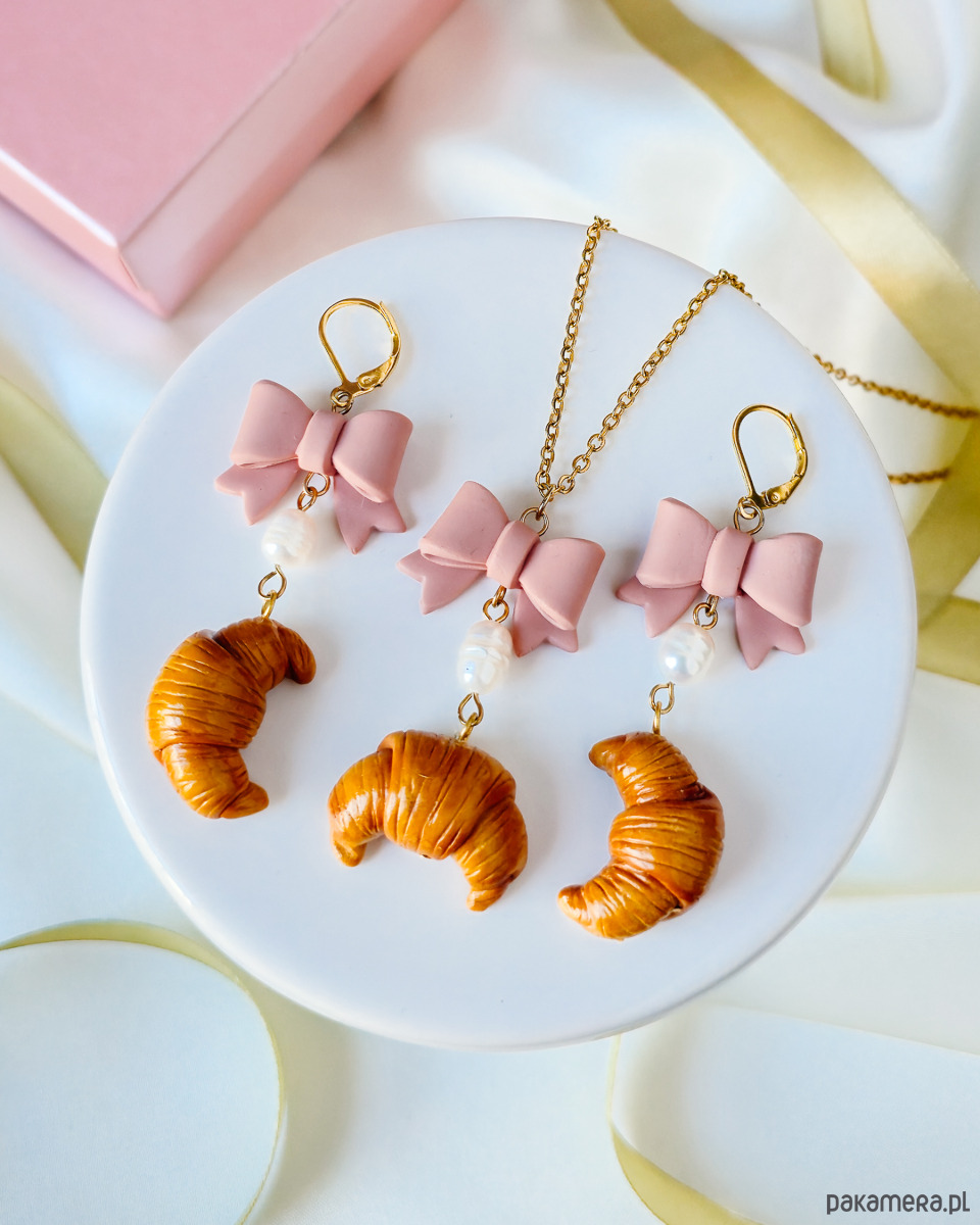 Romantyczne kolczyki z kokardkami i rogalikami