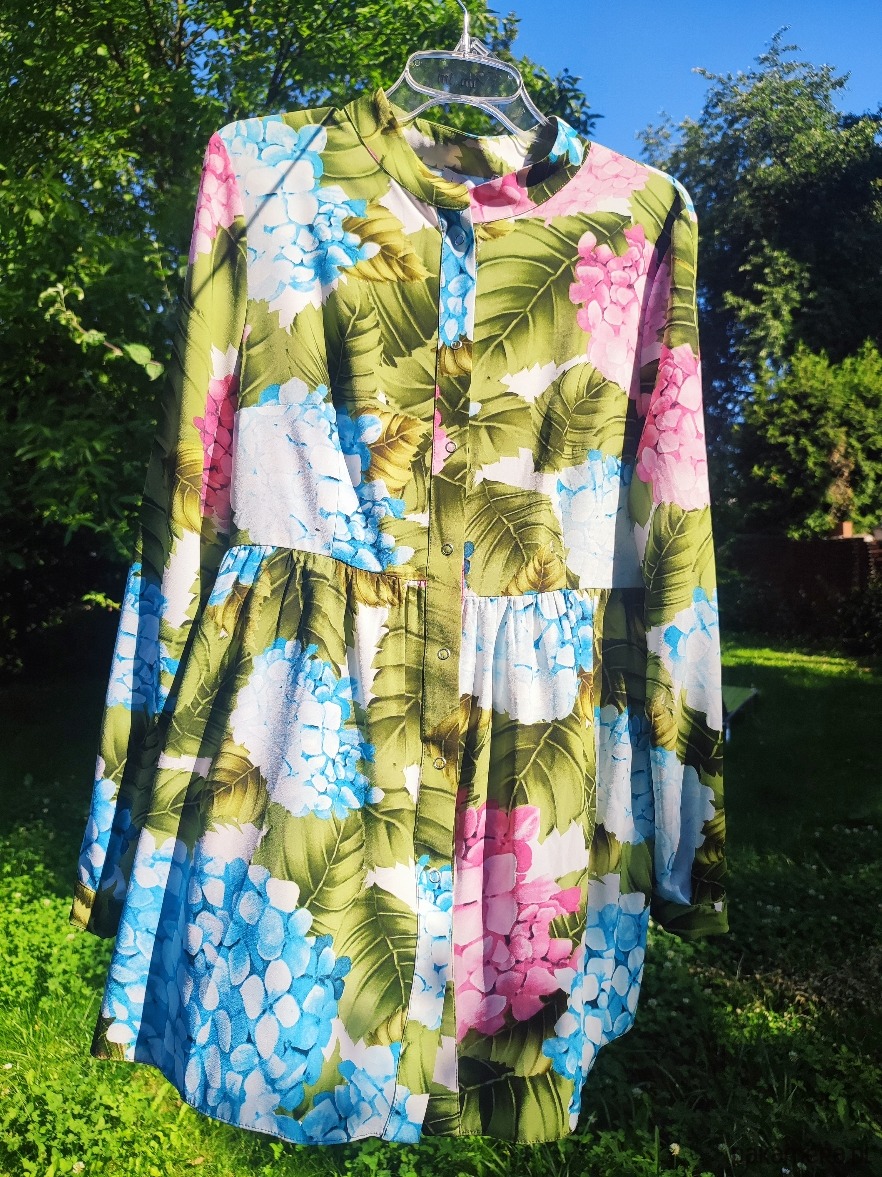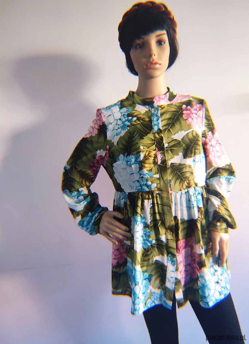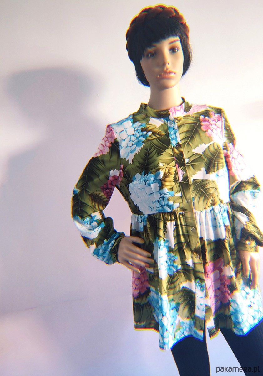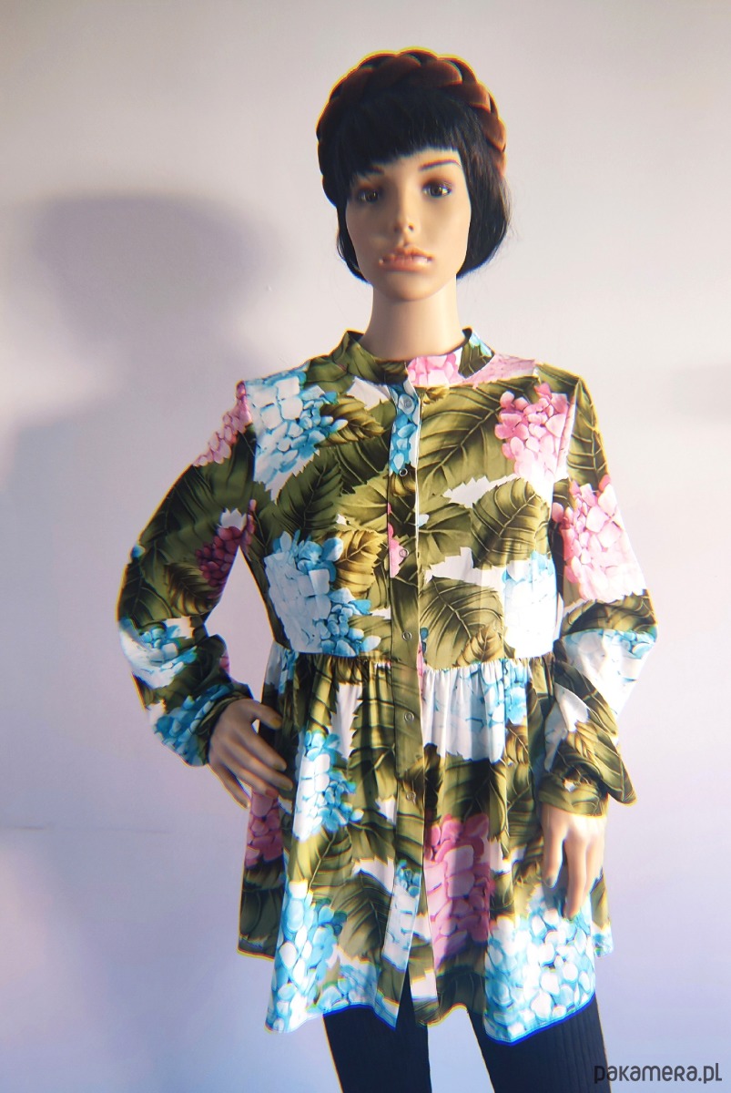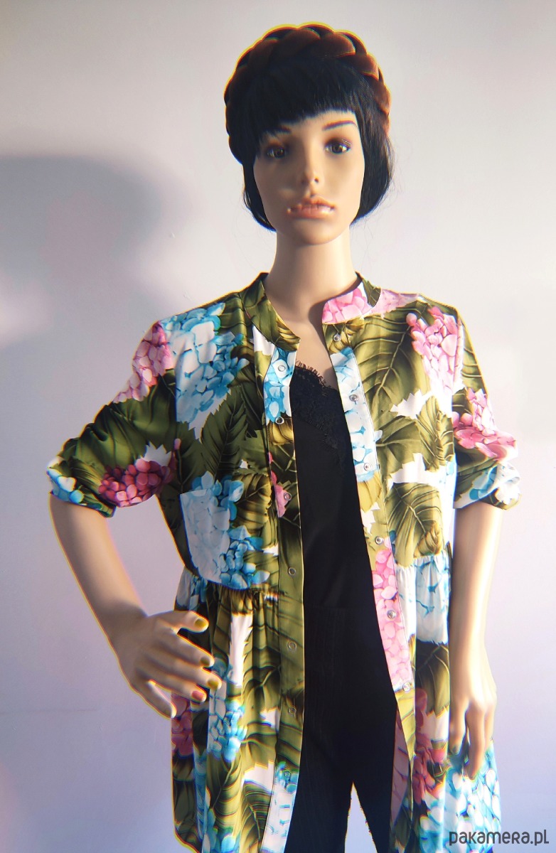 Uroczna, zwiewna, rozpinana bluzka/tunika w rozmiarze standardowego M do legginsów, jeansów lub szortów: aby przywołać lato o każdej porze roku.