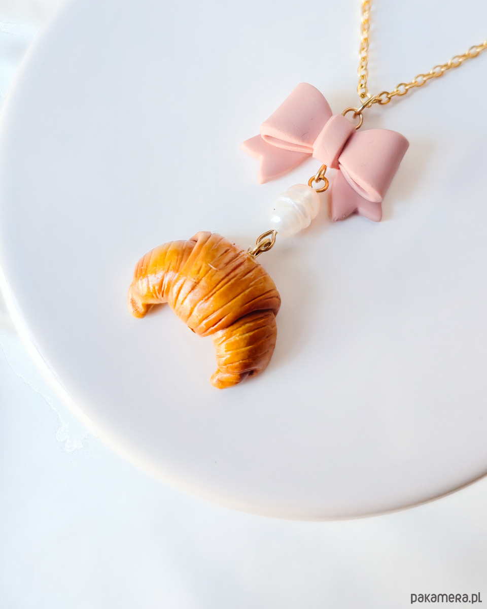 Ten komplet biżuterii z croissantami z różowymi kokardkami to wyjątkowy, romantyczny zestaw stworzony z myślą o osobach, które lubią urocze dodatki .