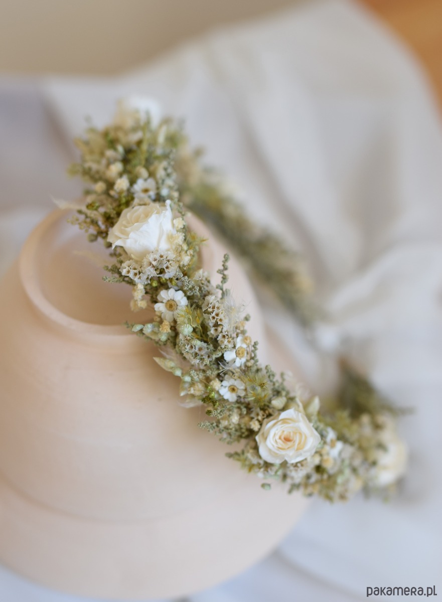 Romantyczny wianek z suszonych i stabilizowanych kwiatów