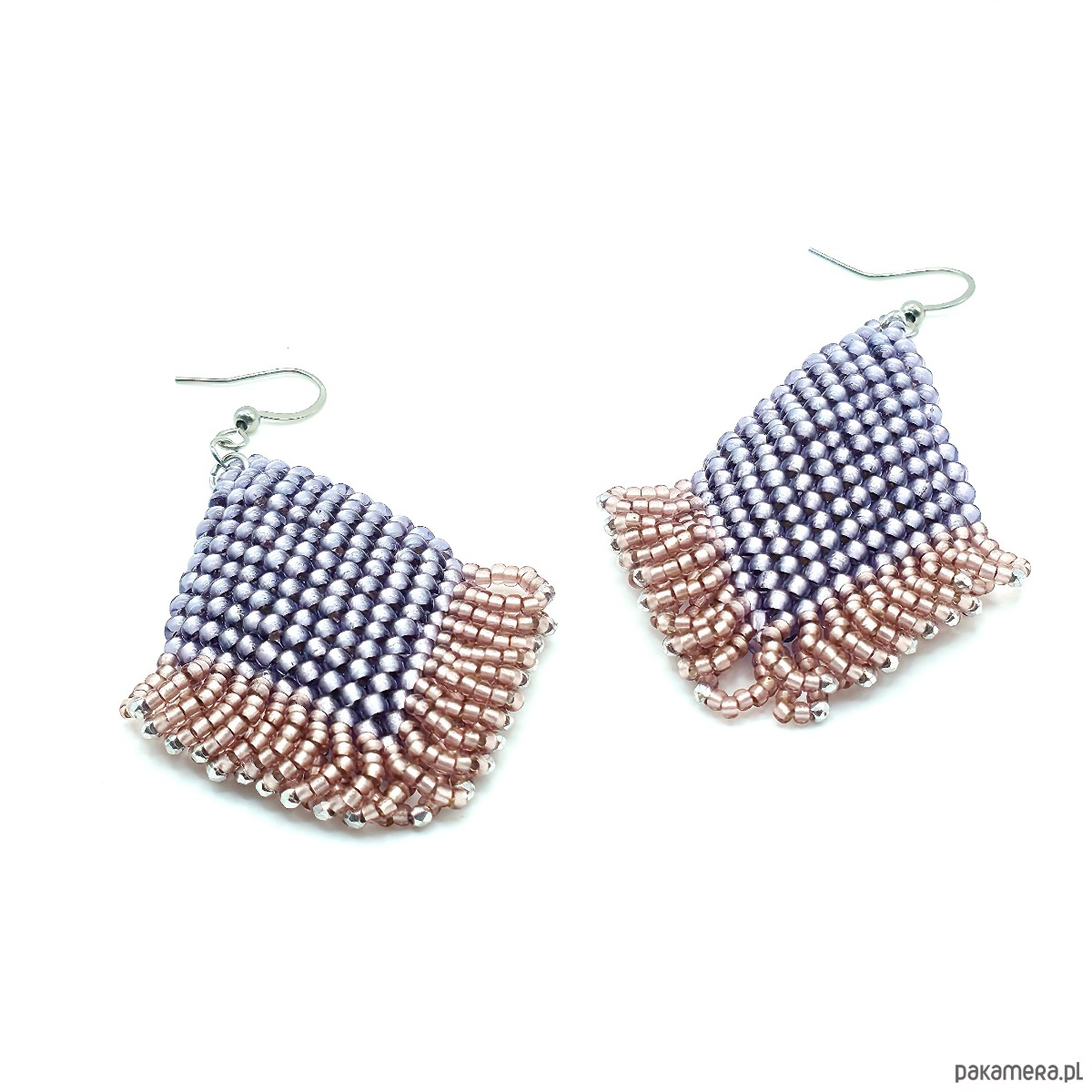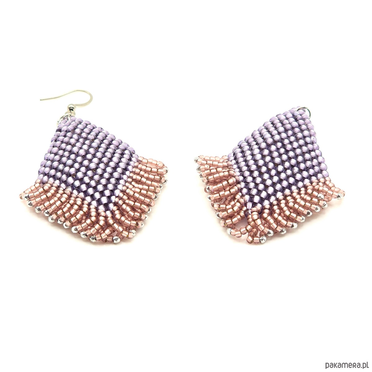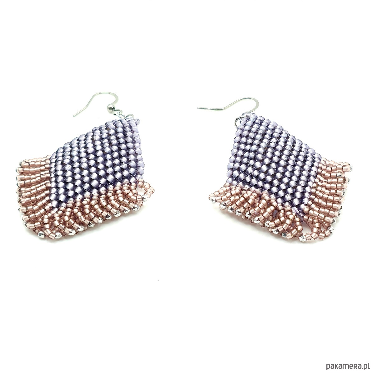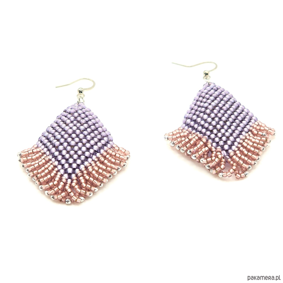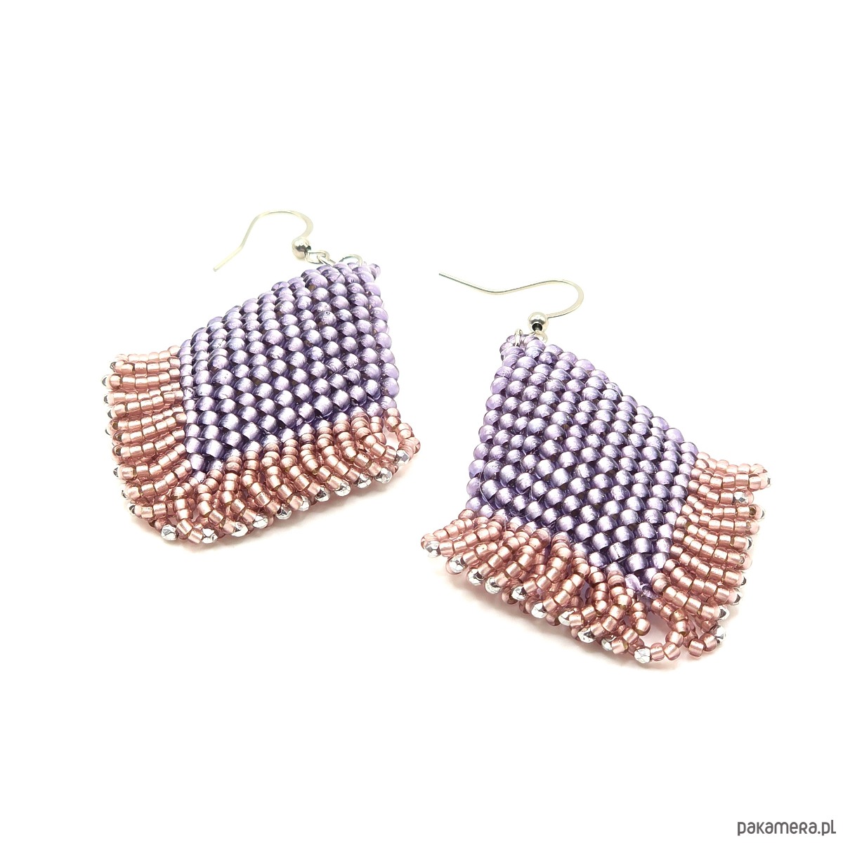 Tytuł: Romby Ametystowe z Falbankami - Kolczyki beading premium