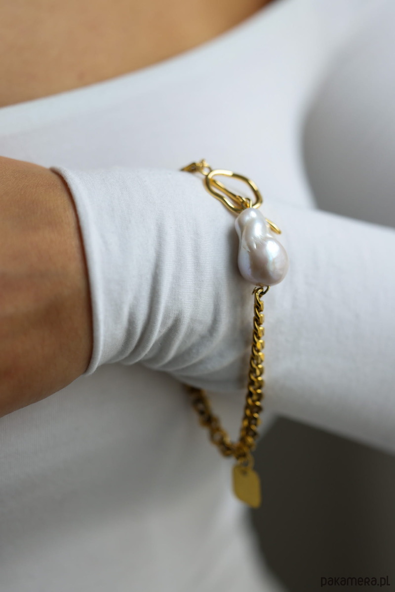 Każda bransoleta jest wyjątkowa przez unikatowy kształt każdej perły. Każdy egzemplarz minimalnie różni się od siebie, jednak perła ma ten sam gabaryt.