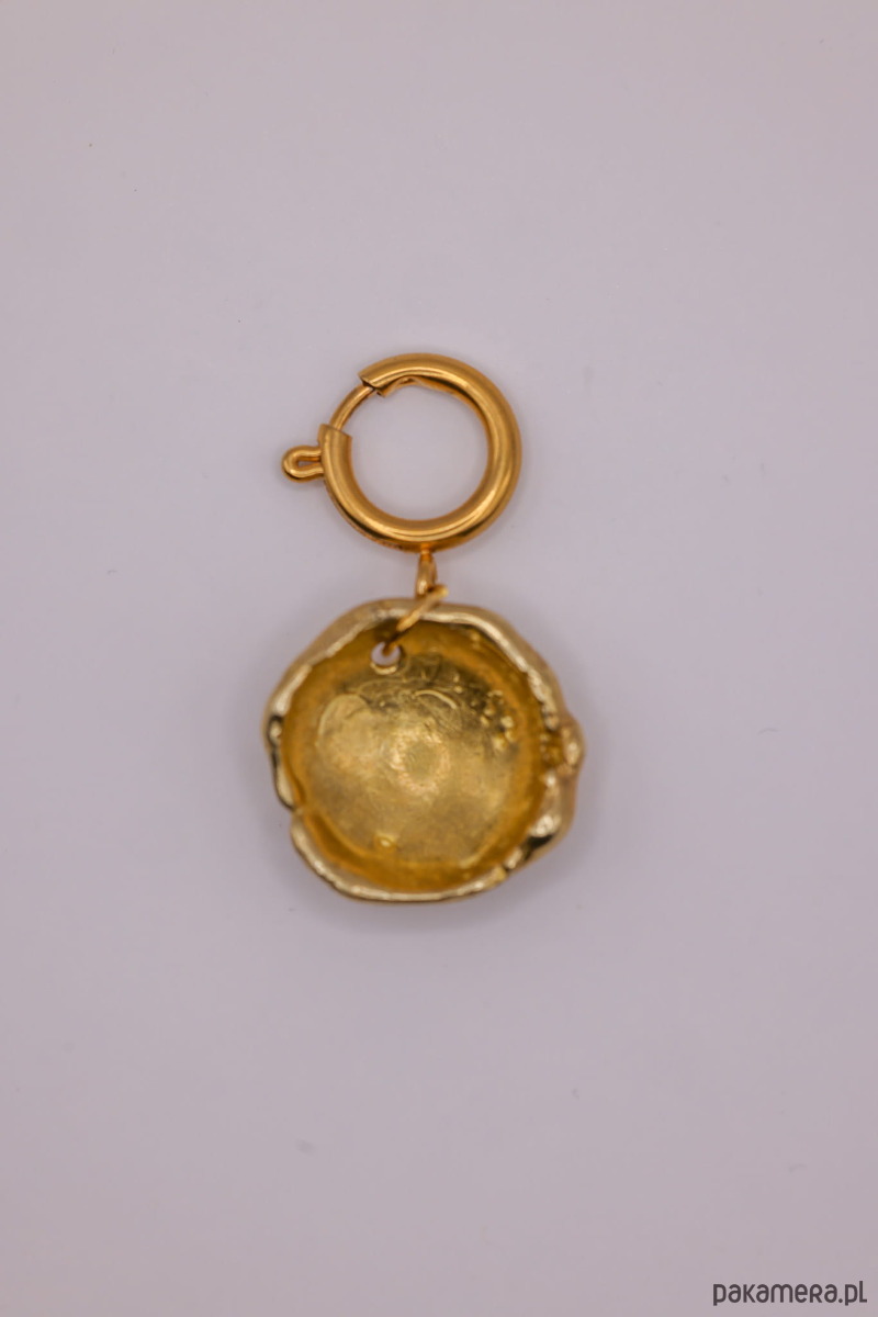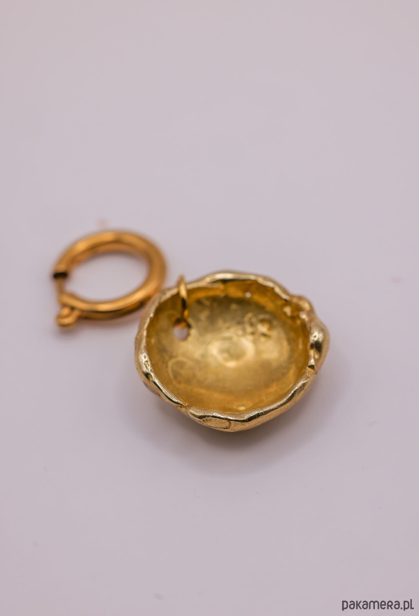 Ręcznie wykonana metodą traconego wosku zawieszka charms w kształcie nieregularnej półkuli z mosiądzu.