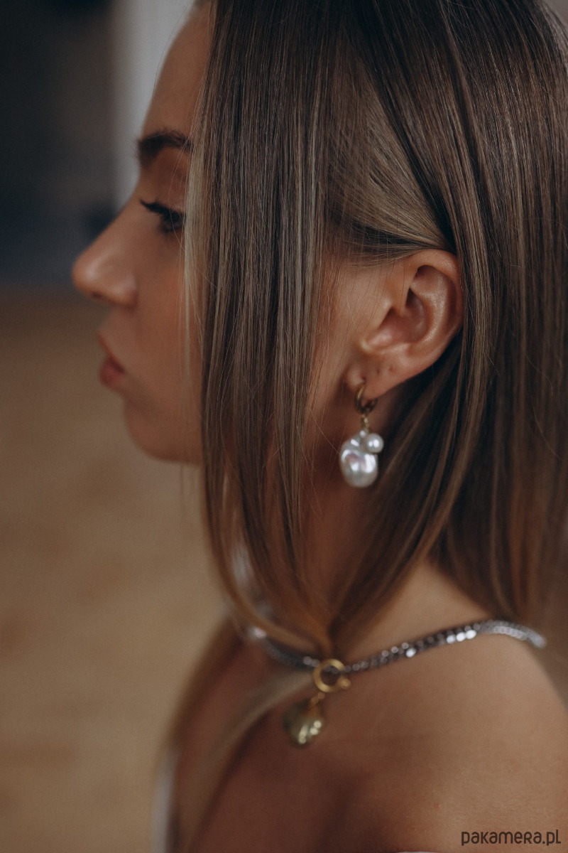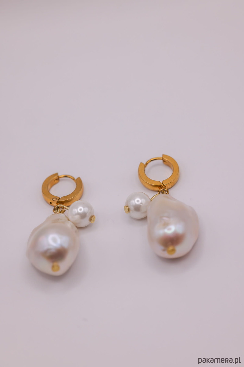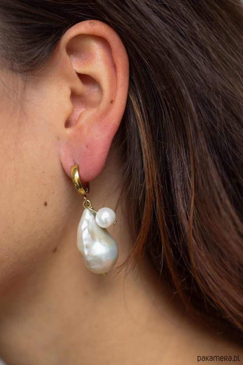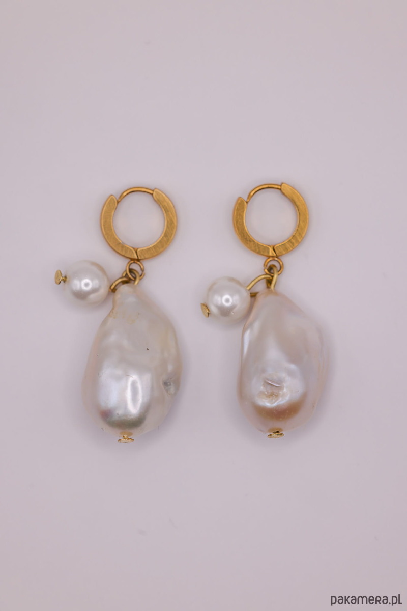 Ręcznie wykonane kolczyki z perłami naturalnymi baroque oraz okrągłymi perłami hodowlanymi i okrągłymi biglami.