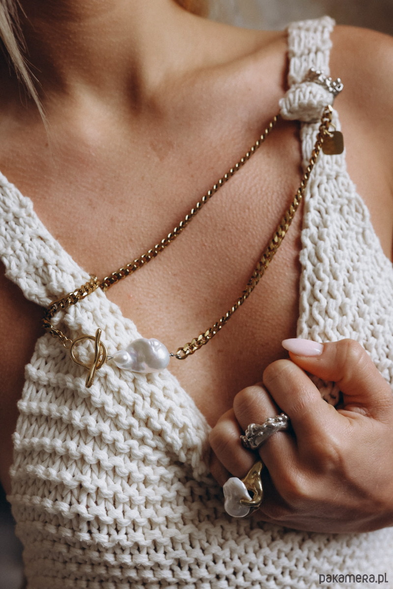 Każdy naszyjnik jest wyjątkowy przez unikatowy kształt każdej perły. Każdy egzemplarz minimalnie różni się od siebie, jednak perła ma ten sam gabaryt.