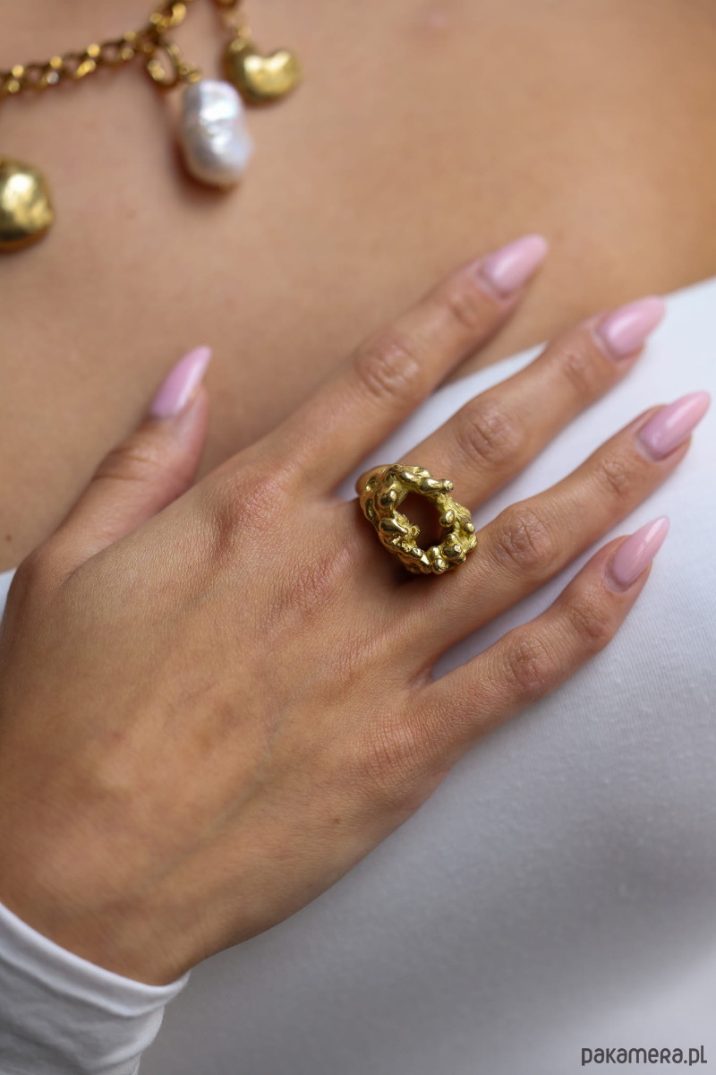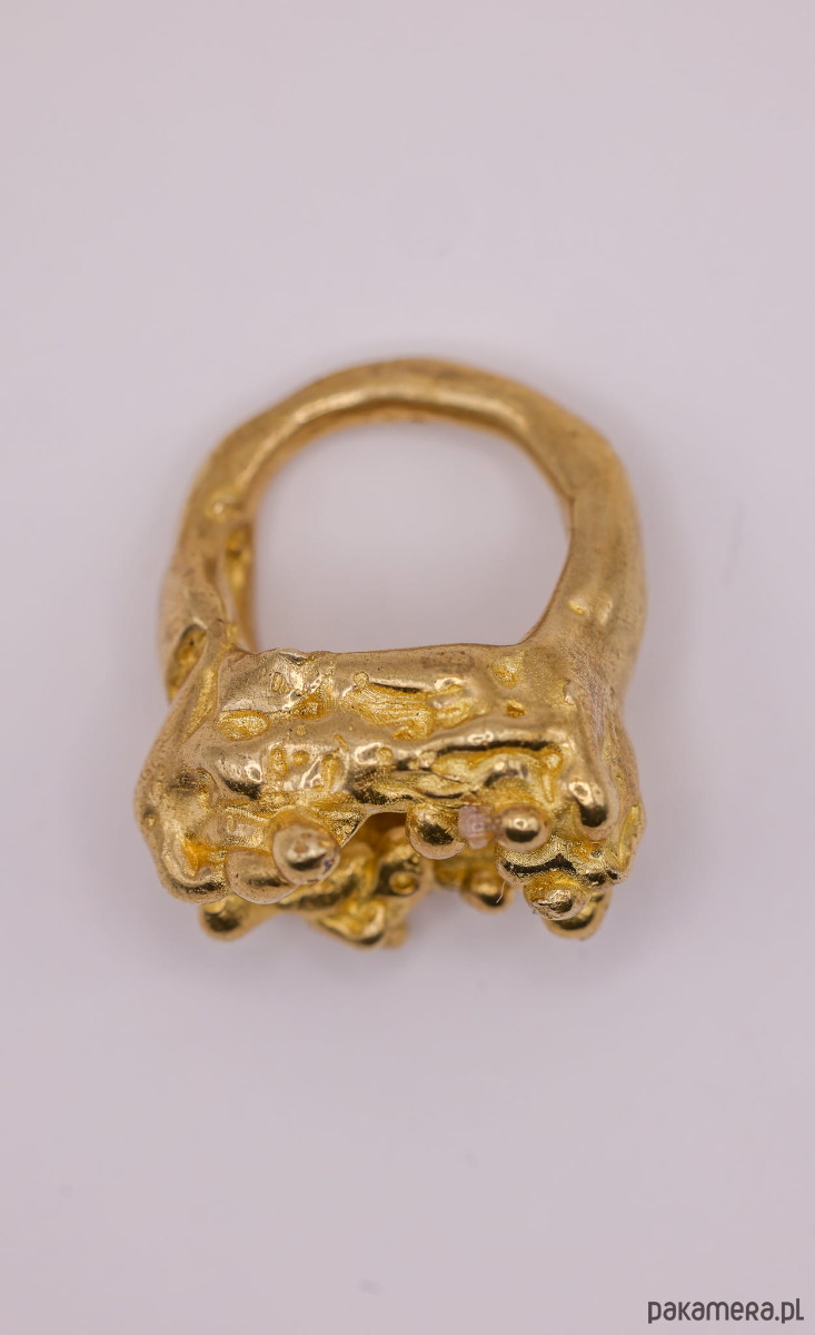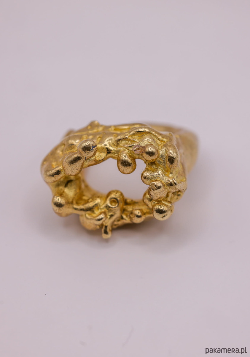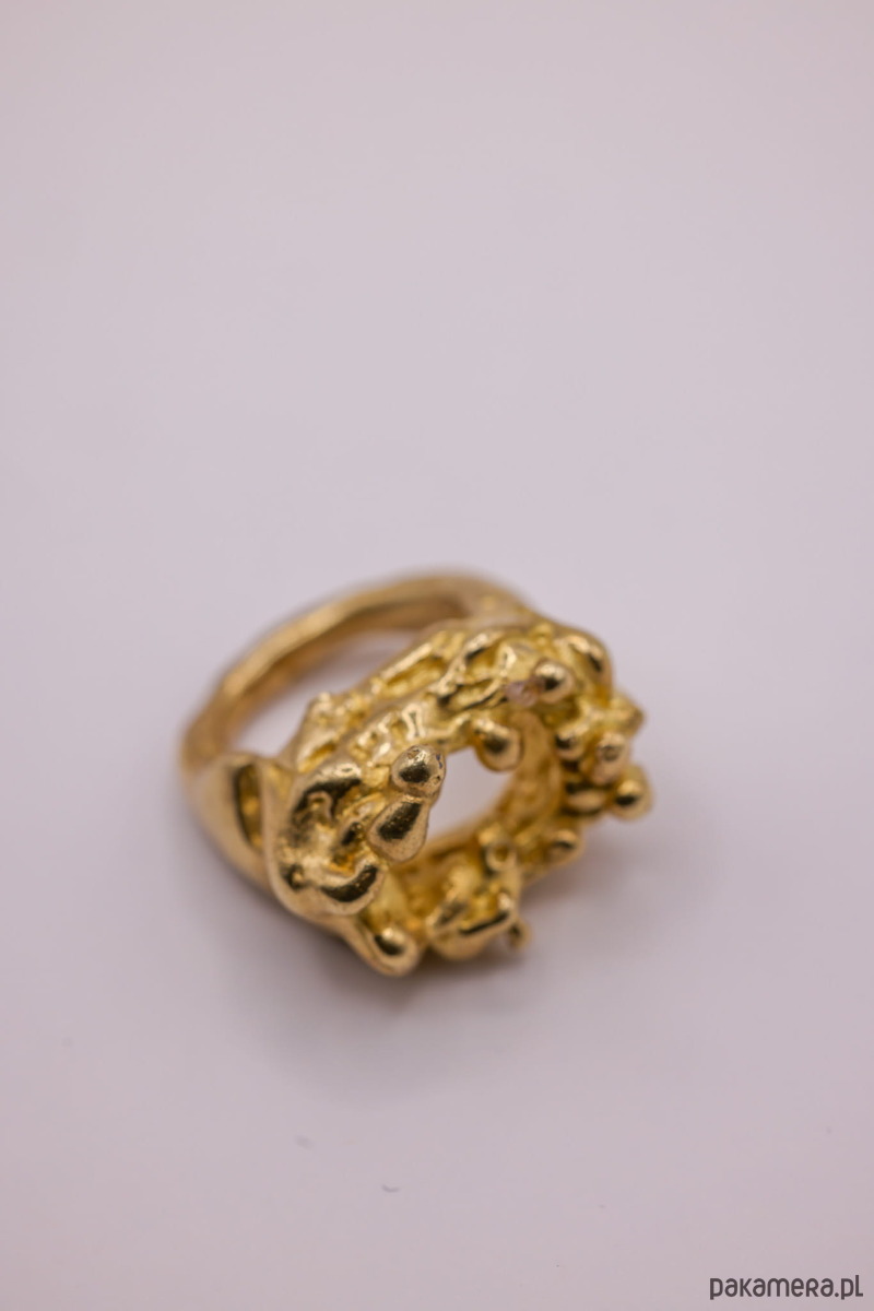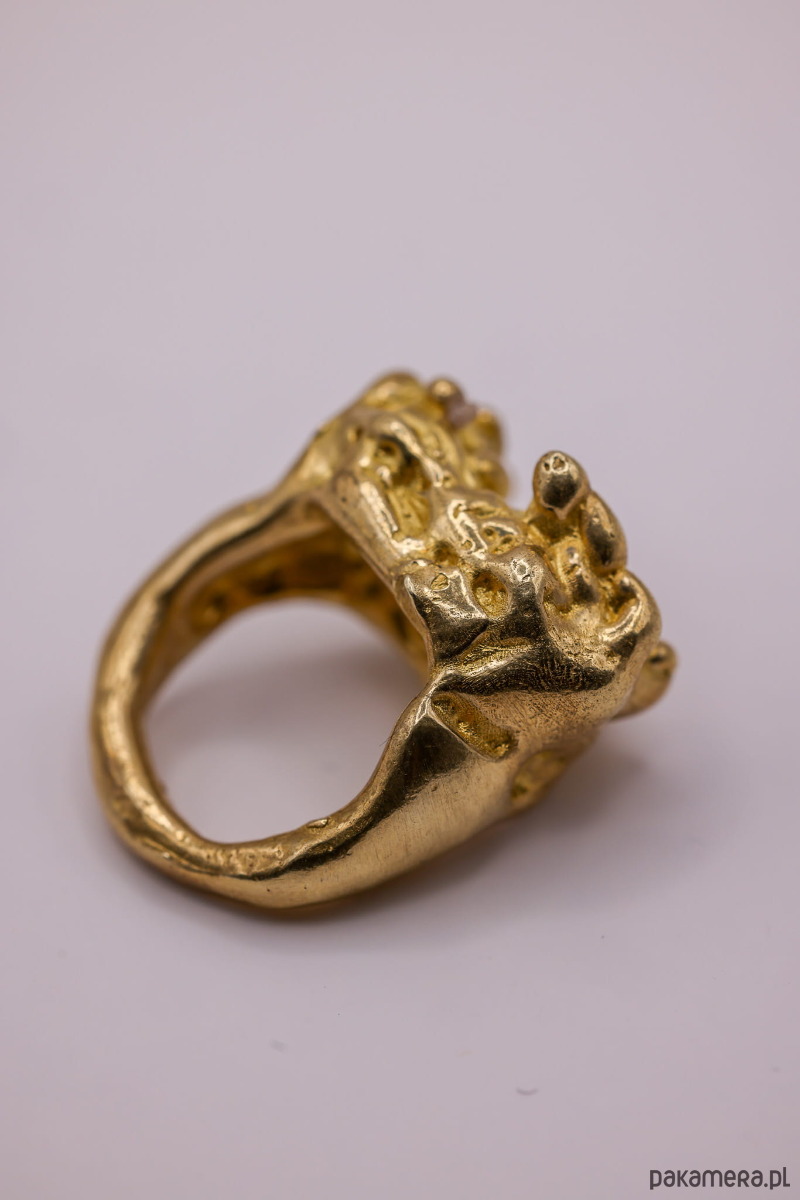 Ręcznie wykonany pierścień metodą wosku traconego. Materiał: mosiądz.
