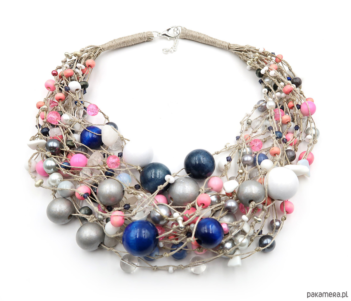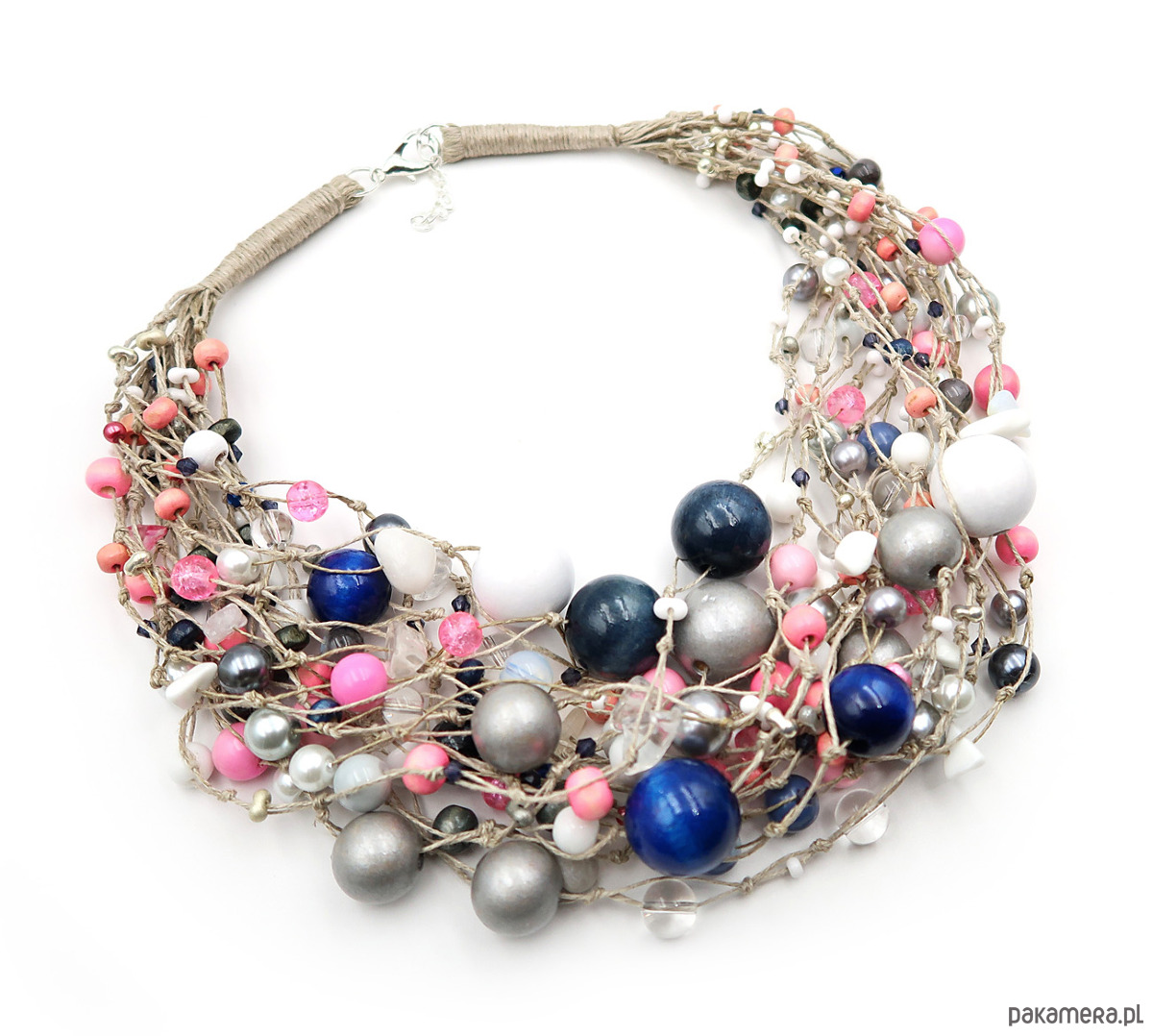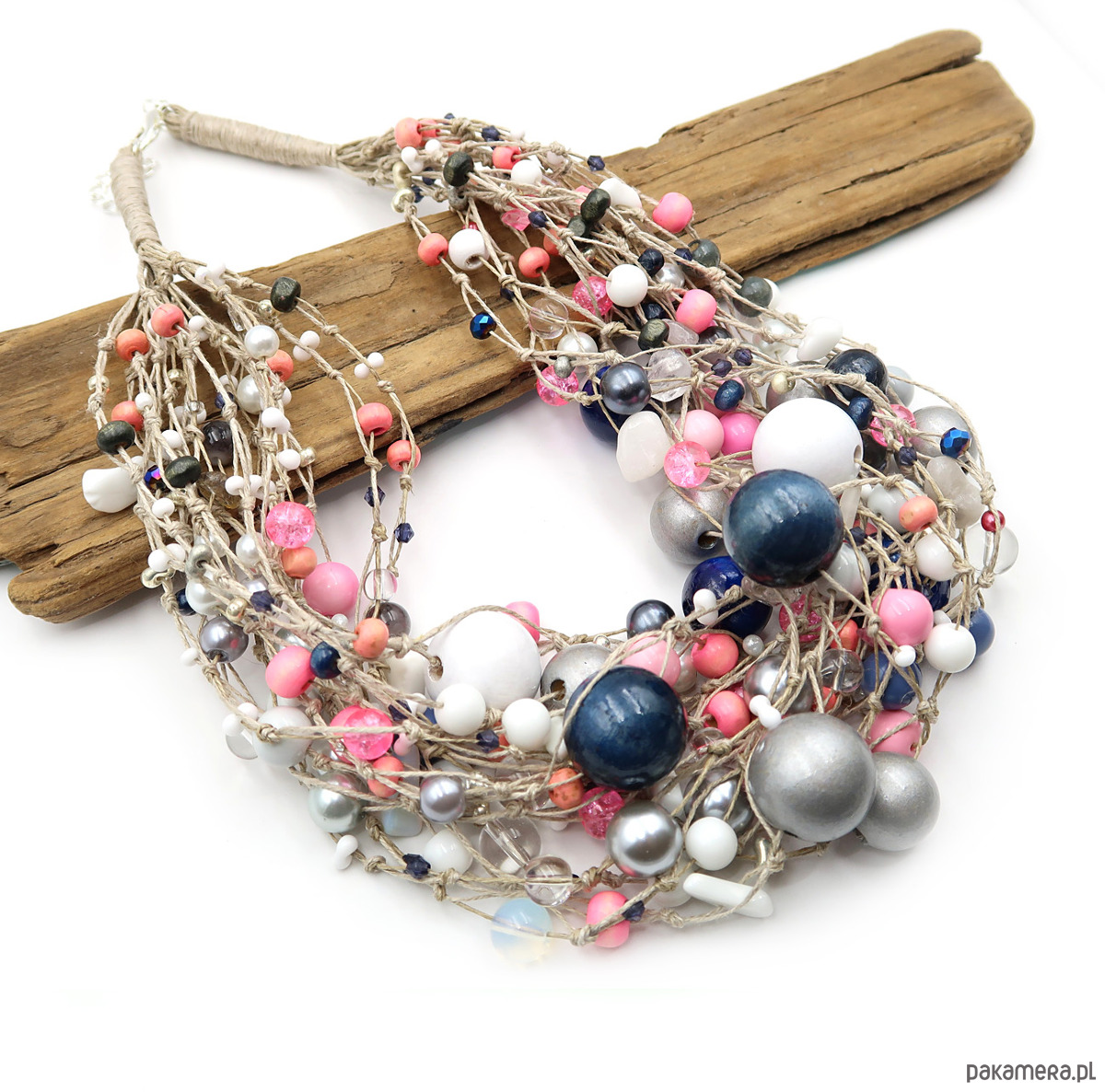 Naszyjnik w pastelowych odcieniach różu wykonany na polskiej przędzy lnianej.