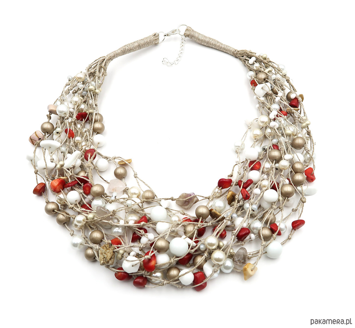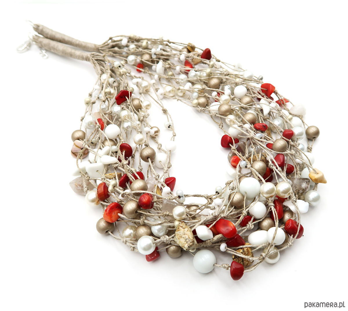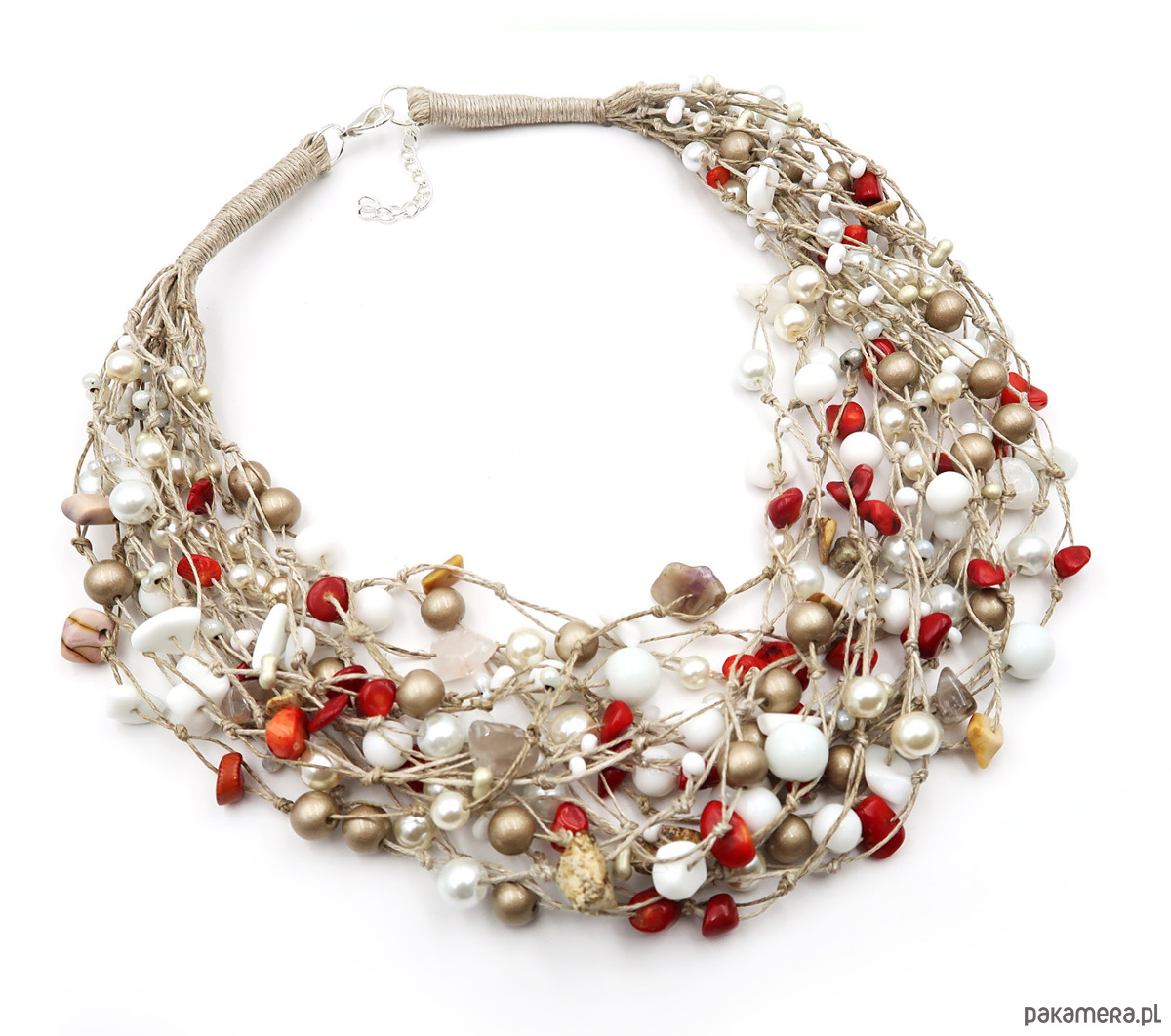 Naszyjnik w pastelowych odcieniach różu wykonany na polskiej przędzy lnianej.