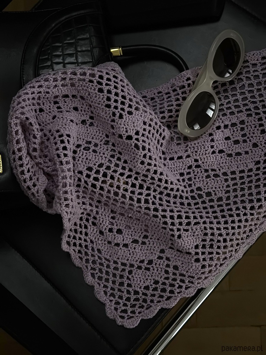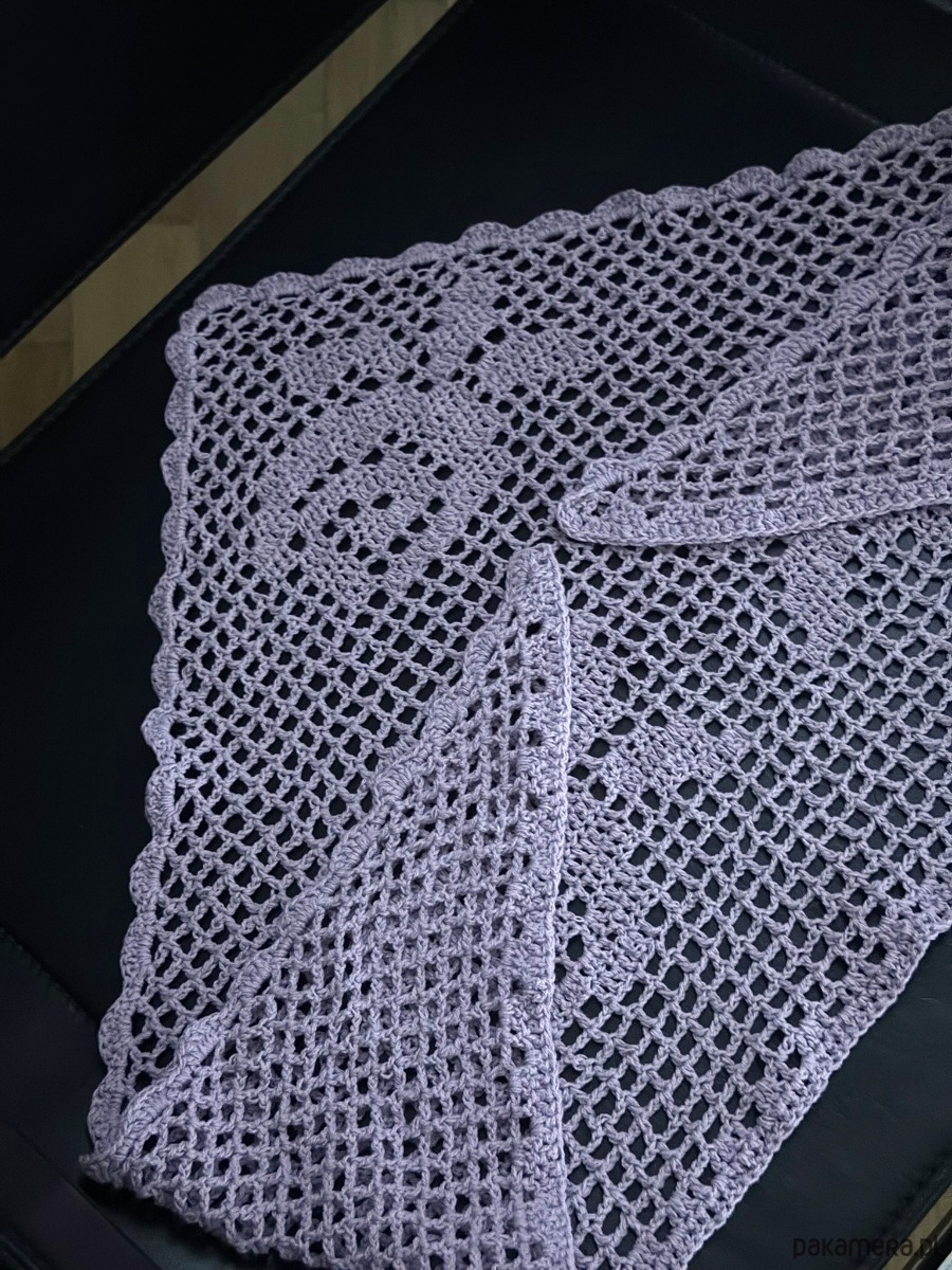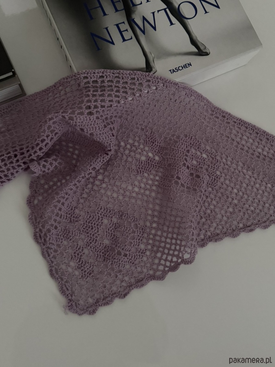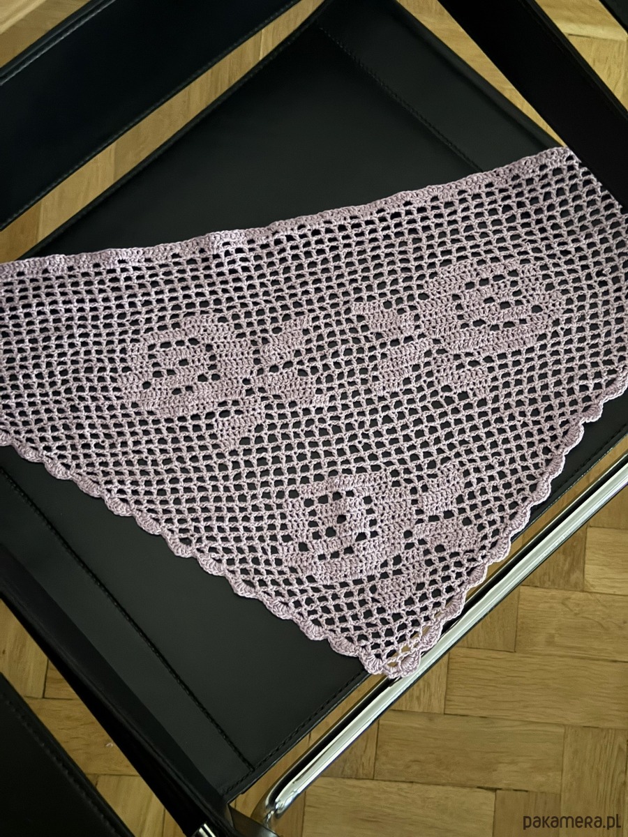Szal/apaszka wykonana na szydełku z wzorem róży. Ten model wykonywany jest na zamówienie, dlatego czas oczekiwania to około 2-3 tygodnie.