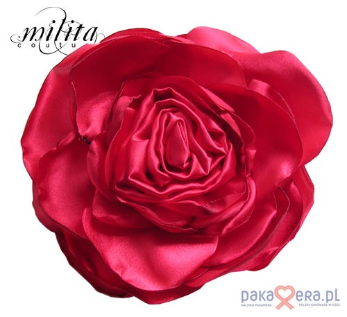 Piękna, ręcznie wykonana broszka z czerwonej satyny. Idealny dodatek do bluzek, torebek, wnętrza czy włosów (przypnij ją do gumki). Ożywisz nią każdą kreację, która stanie się bardziej seksowna i kobieca. Świetny prezent dla siebie lub ukochanej osoby :) Średnica kwiatka : 7cm Pozostałe zdjęcia przedstawiają różne sposoby stylizacji.