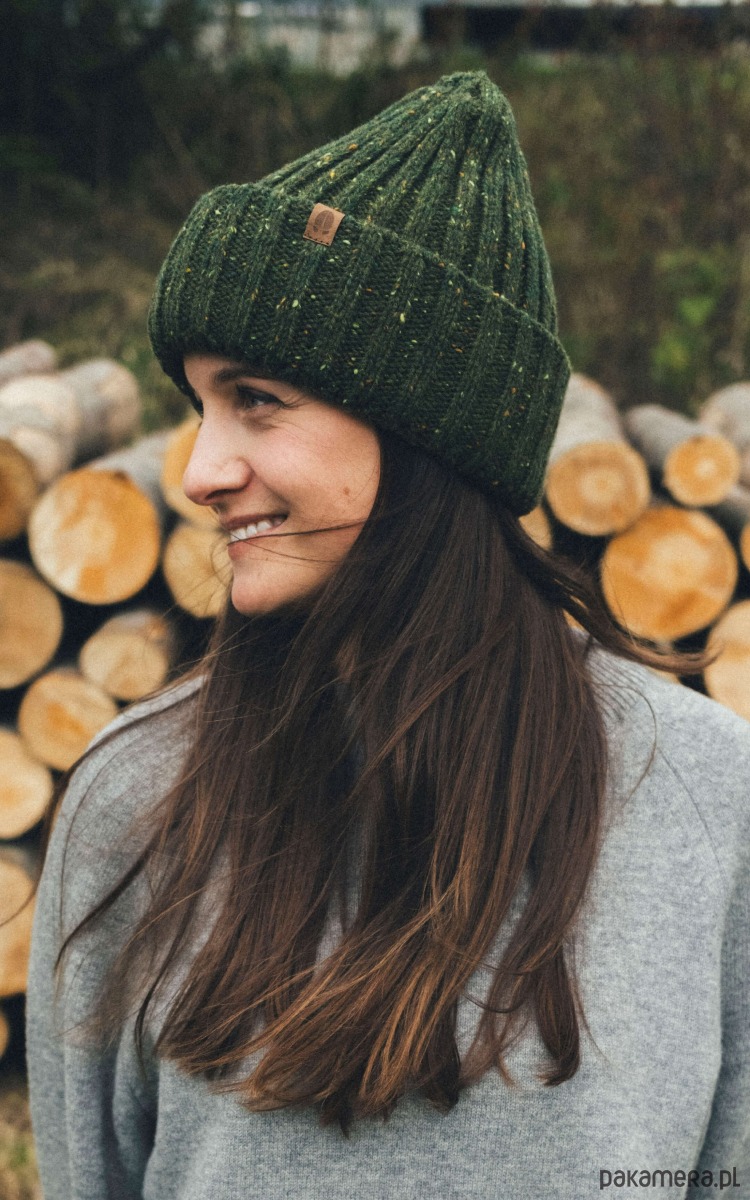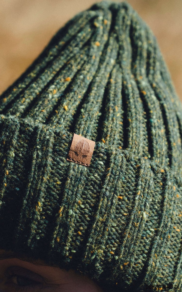 ROSOMAK MELANŻ Czapka Zielona z Nopkami Szeroki Prążek 100% Wełny Merino