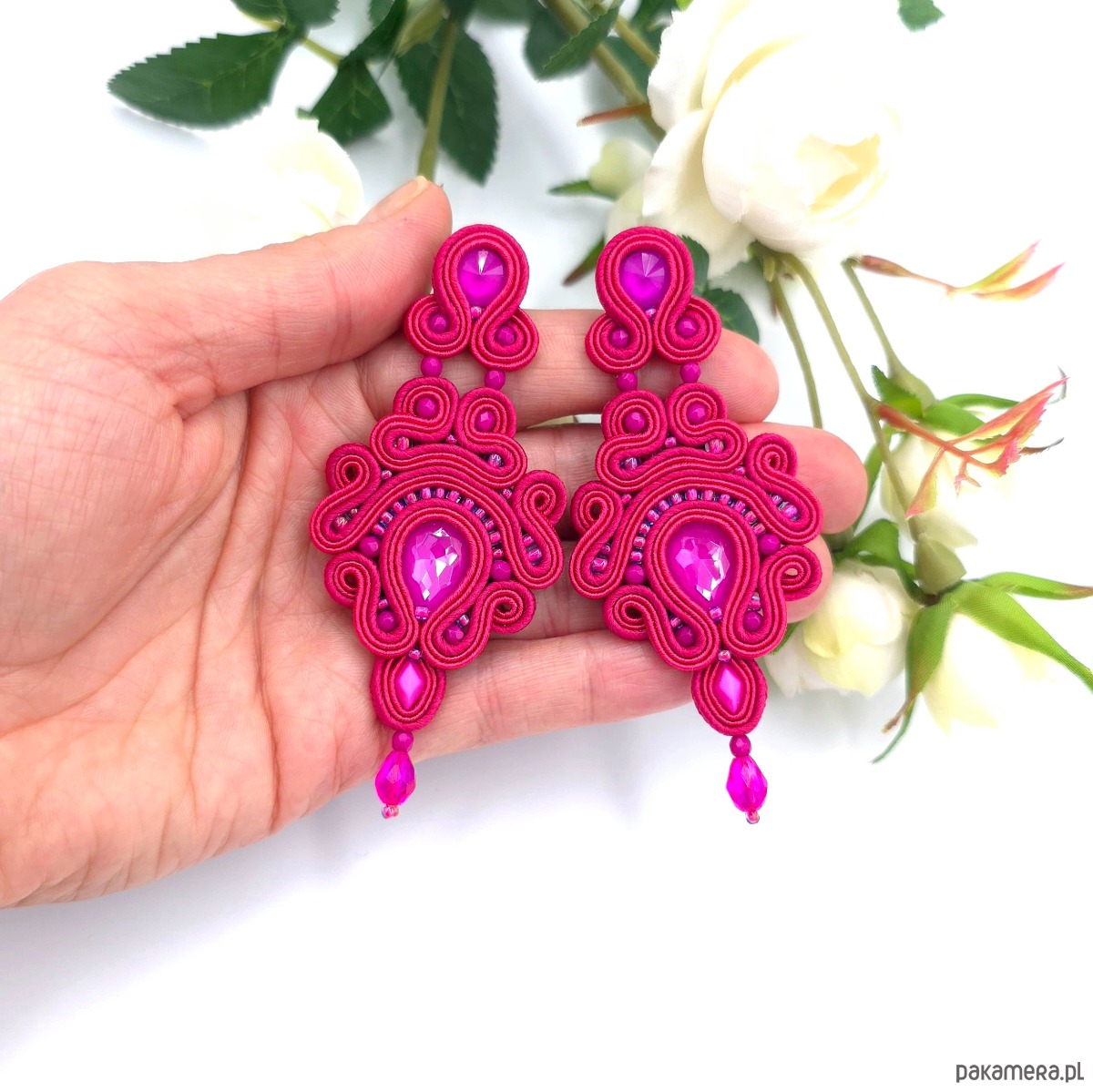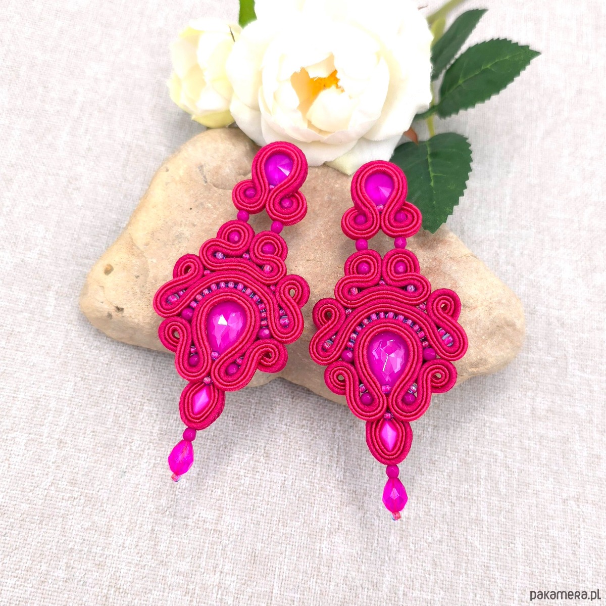 Bardzo eleganckie, długie kolczyki sutasz w kolorze różowym.