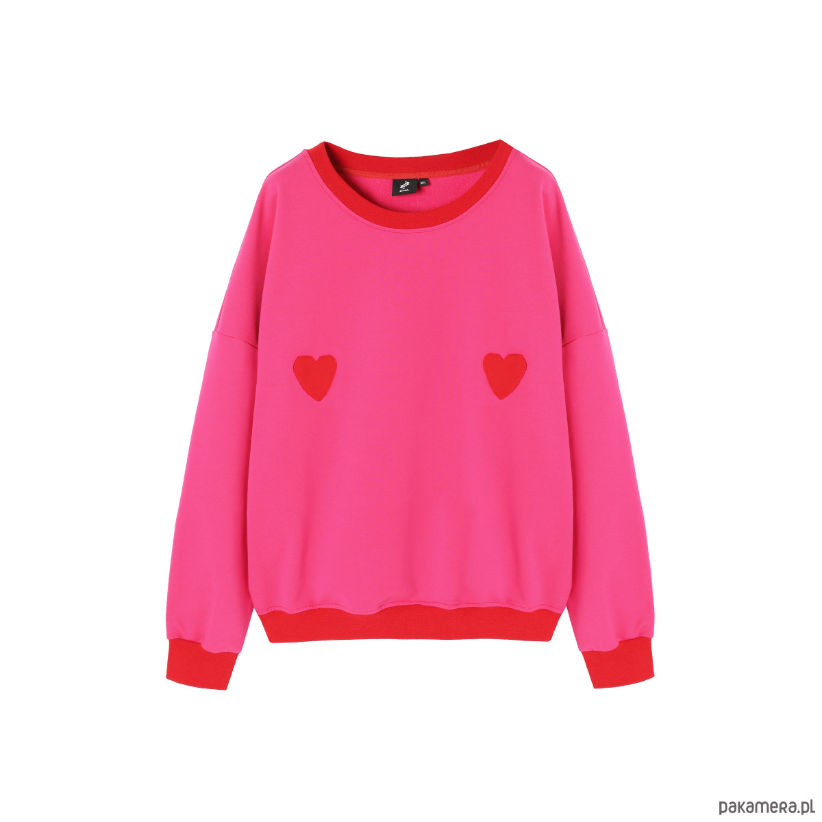 Różowa bluza z serduszkami wykończona czerwonymi ściągaczami. Bluza uszyta jest z wysokogatunkowej dzianiny prosto z łódzkiej dziewiarni. Piękne nasycone kolory i mięciutka bawełna.
