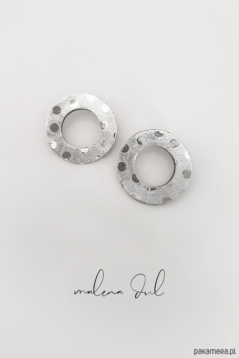 ROTA duże srebrne kolczyki koła skóra naturalna kropki