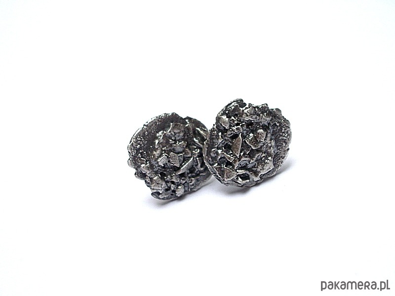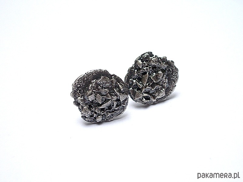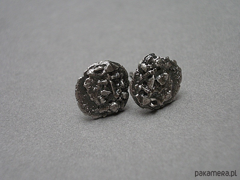 Kolczyki - sztyfty wykonane ręcznie od podstaw ze srebra [pr. 925]. Blaszki [11mm x 12mm]. Srebro oksydowane i przetarte.