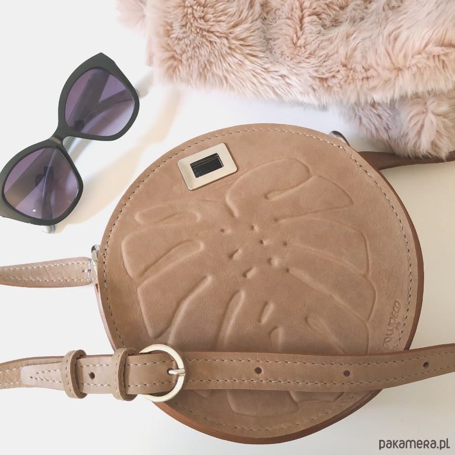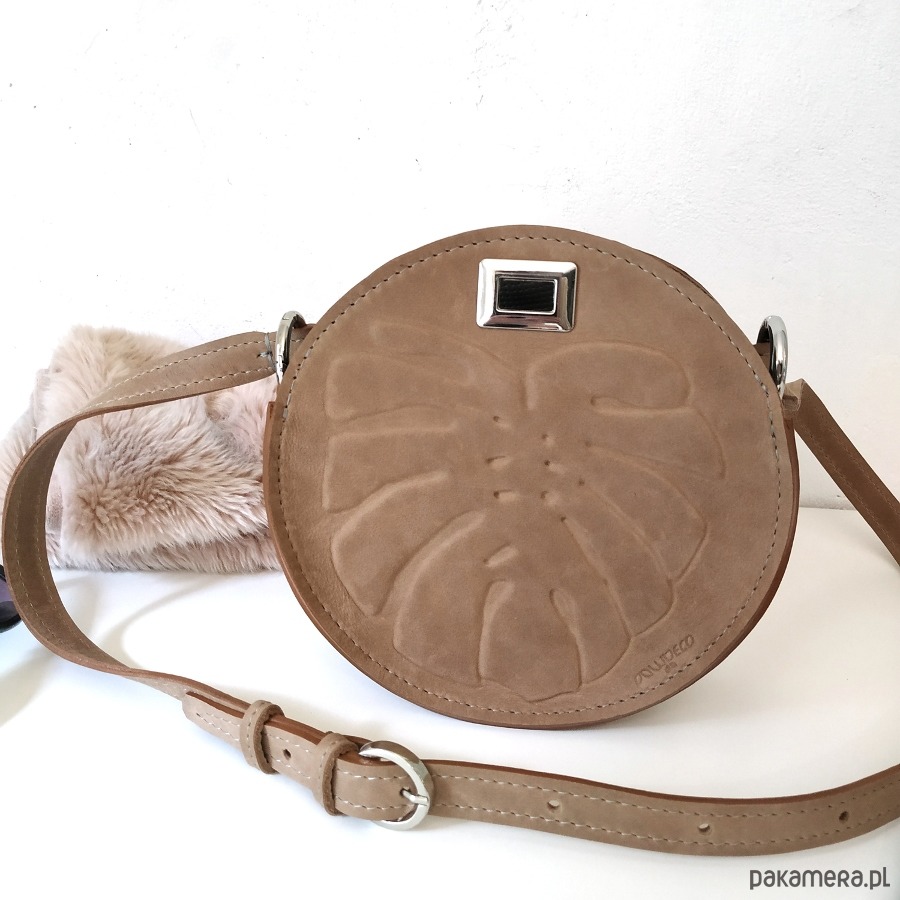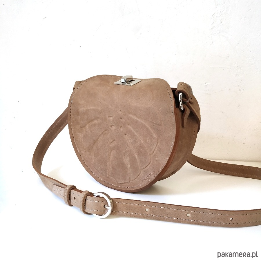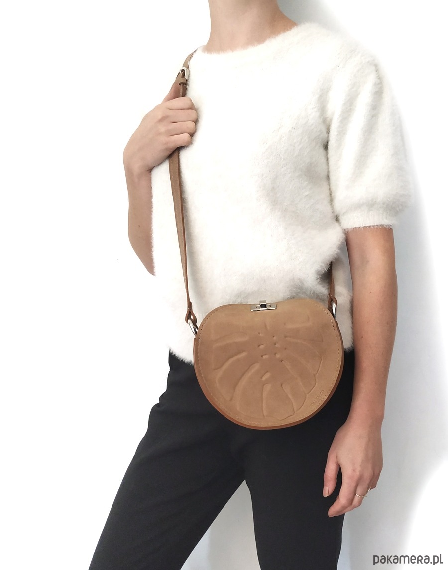 Wyjątkowa mała torebka na ramię na miejskie wypady, wykonana z naturalnych skór z autorskim tłoczeniem liścia monstery.