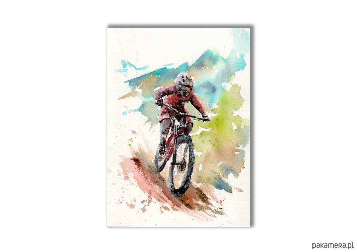 Rower górski. Akwarela ręcznie malowana